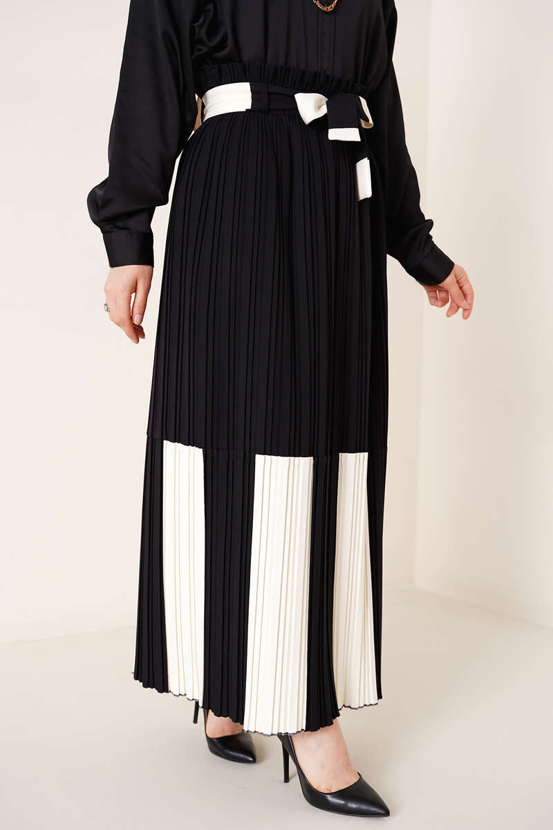 Yeni sezon eteğimiz dikkat çeken tasarımıyla sizler için geldi. Eteğimiz piliselidir. Çift renk detaylı tasarıma sahiptir. Kuşağı bulunmaktadır. Beli lastiklidir. İçi astarlıdır. Her kıyafetinizle rahatlıkla kombin yapabilirsiniz.