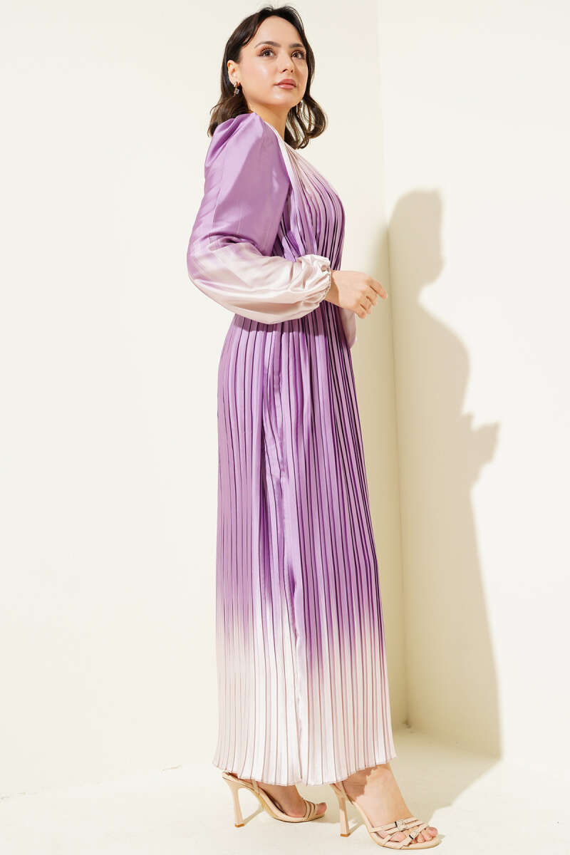 Dalga Dantelli Kuşaklı Elbise Lila