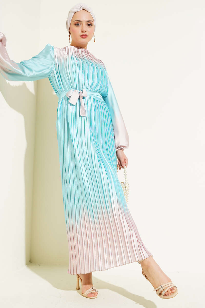 Duble Kol İp Kuşaklı Loyşa Elbise İndigo