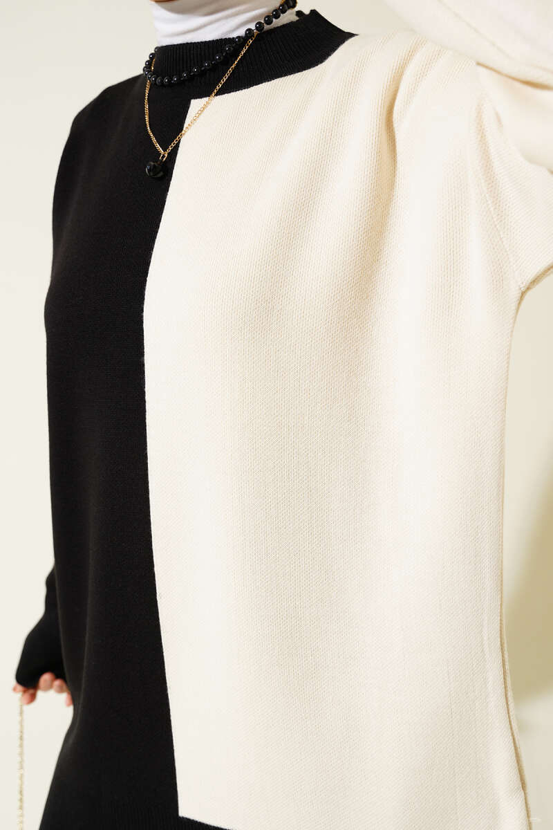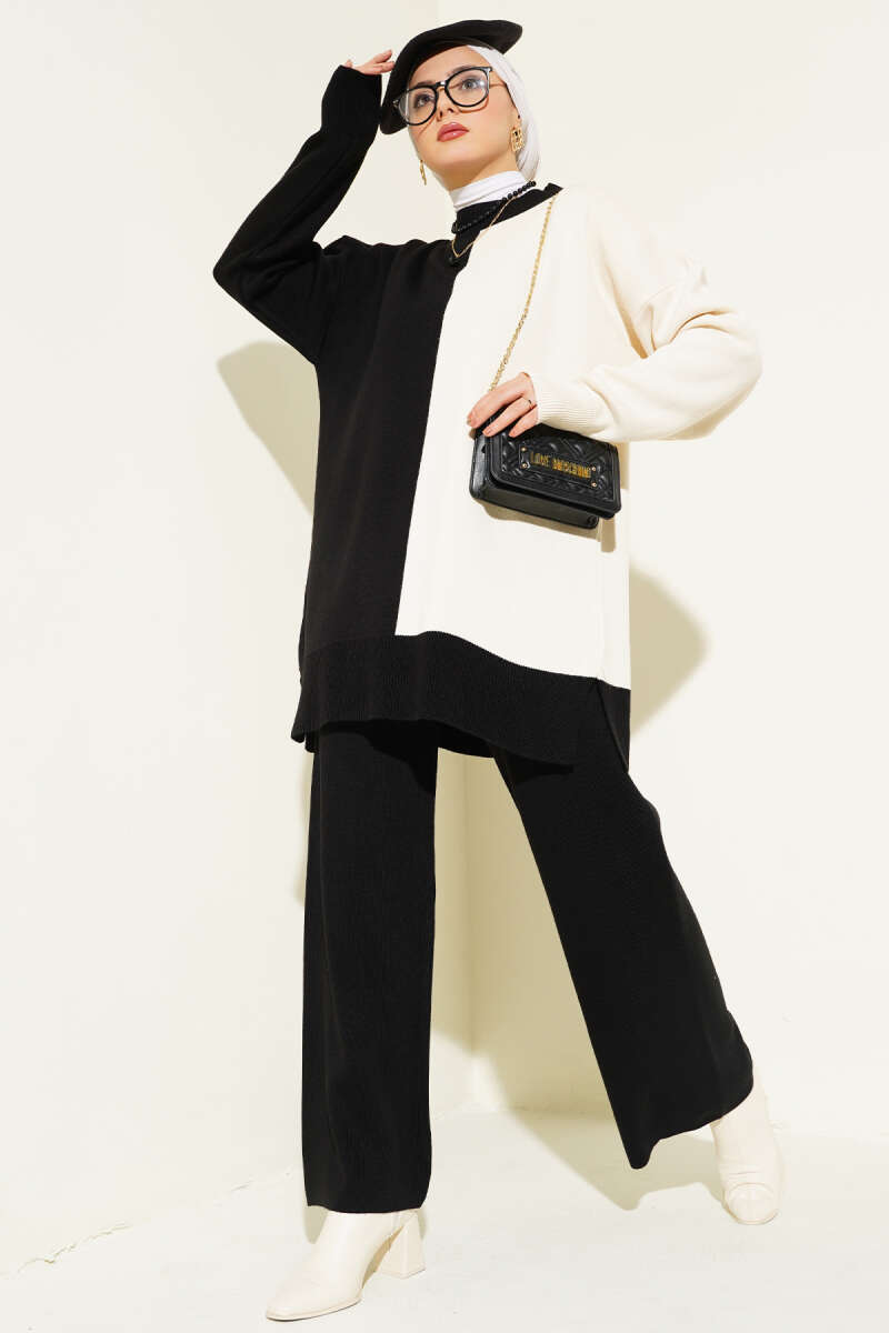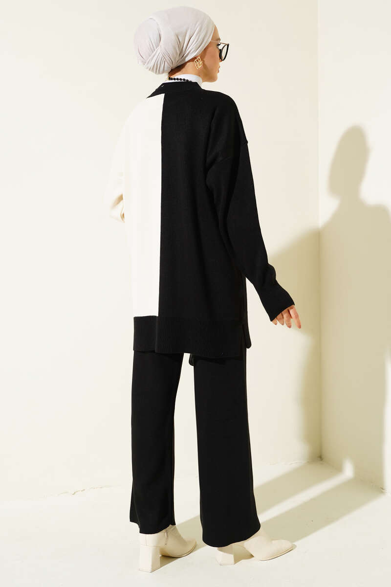 Çift Renkli Triko İkili Takım Siyah