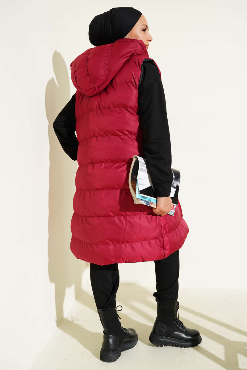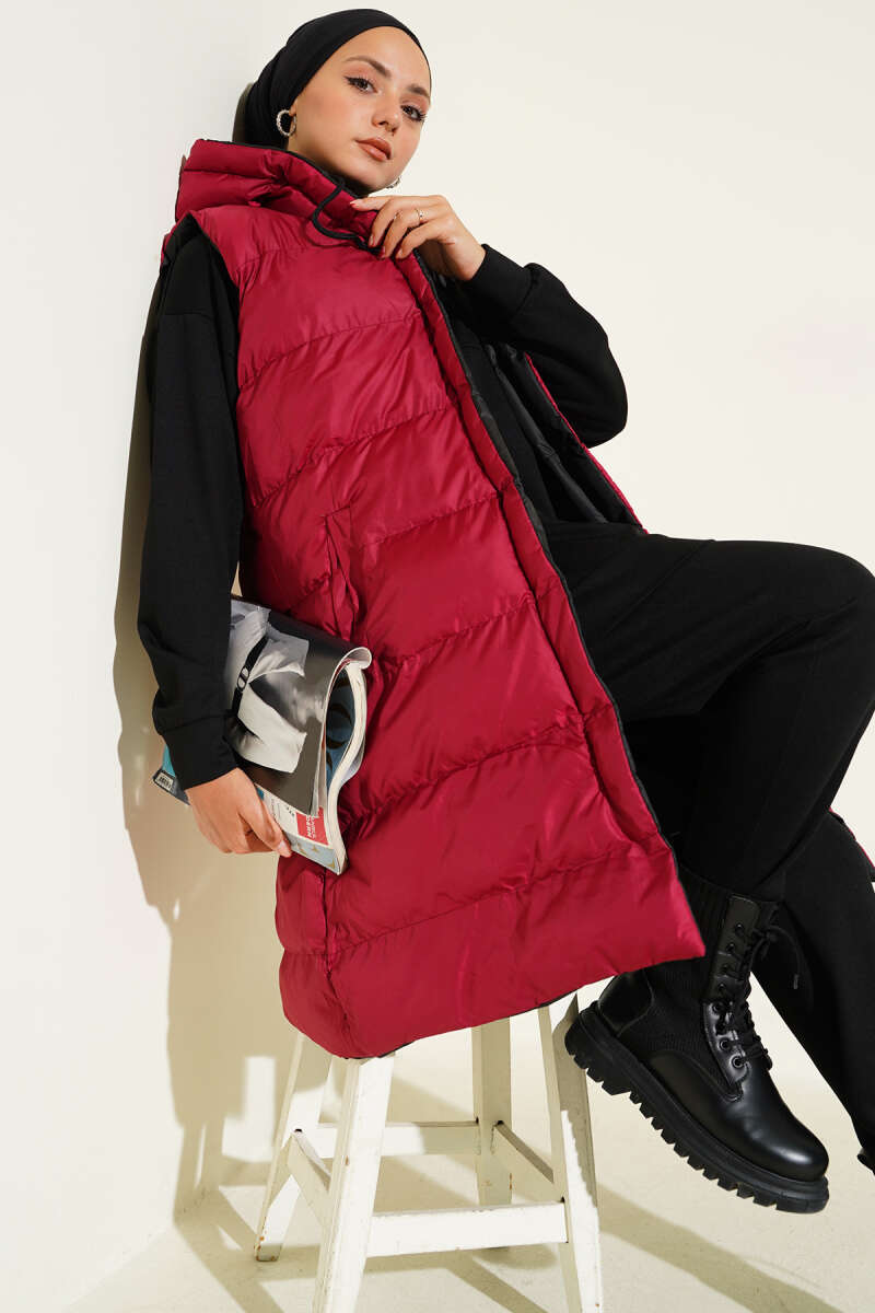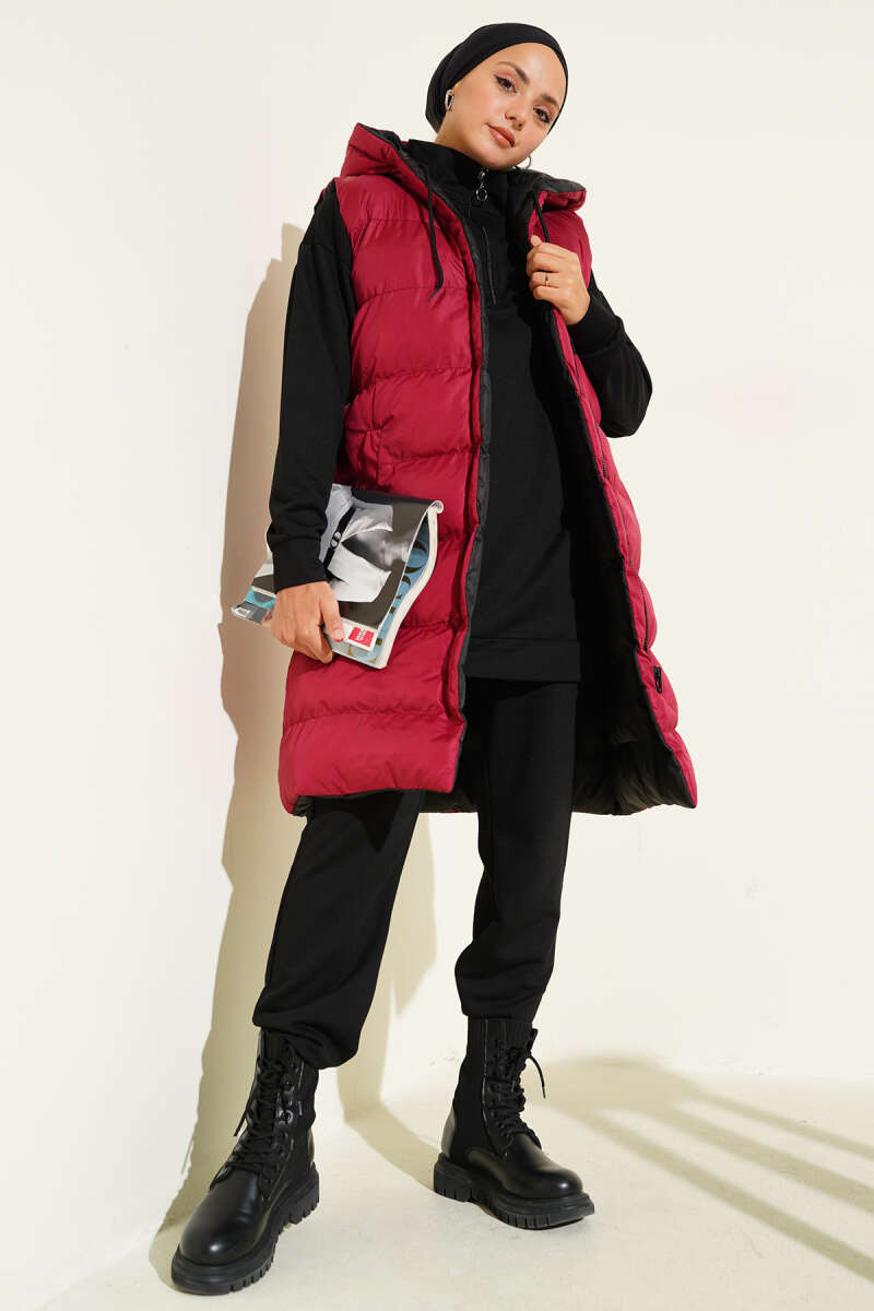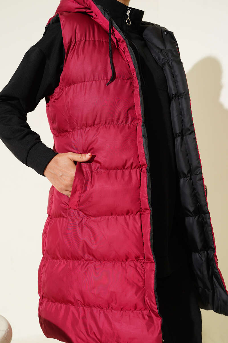 Çift Taraflı Fermuarlı Şişme Yelek Siyah Bordo