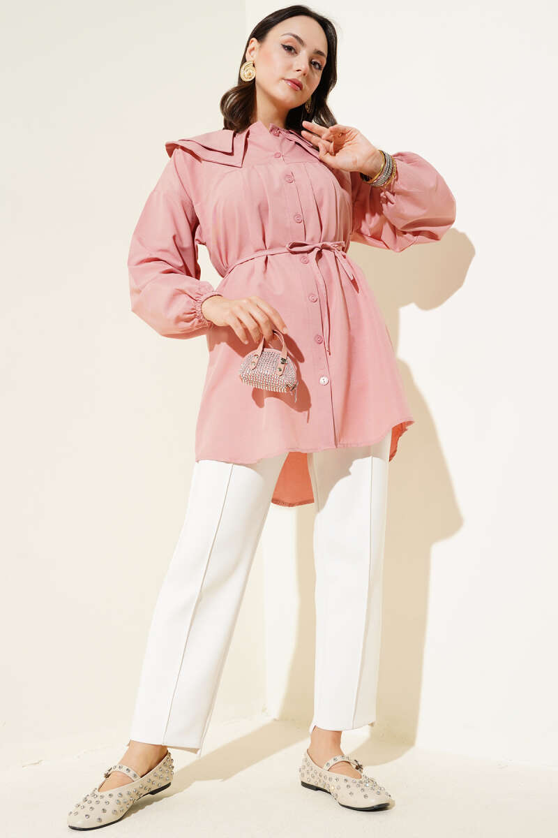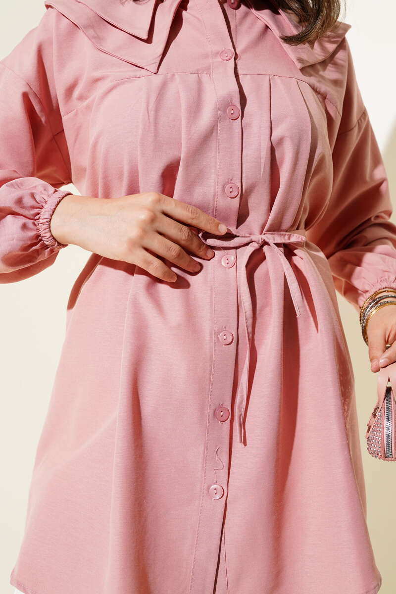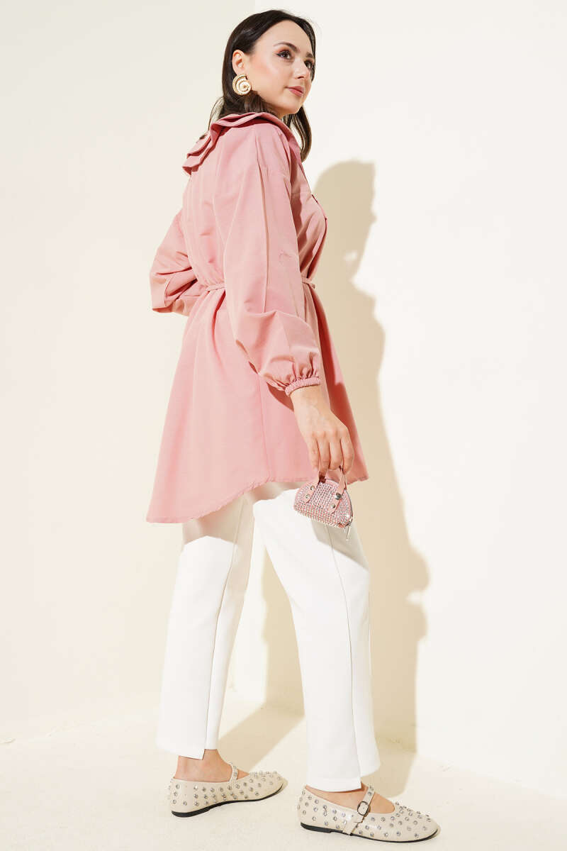 Çift Yaka İp Kuşaklı Gömlek Pudra