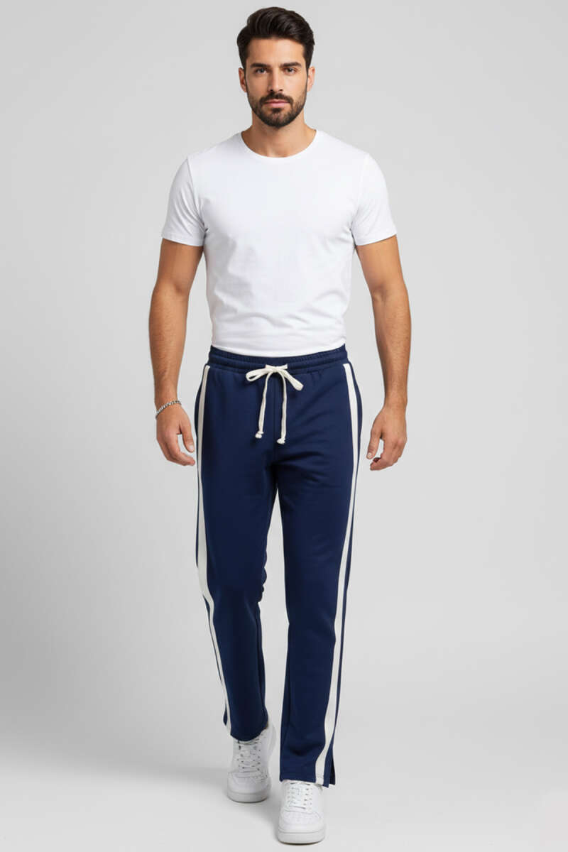 Çift Yan Şeritli Erkek Eşofman Alt Siyah