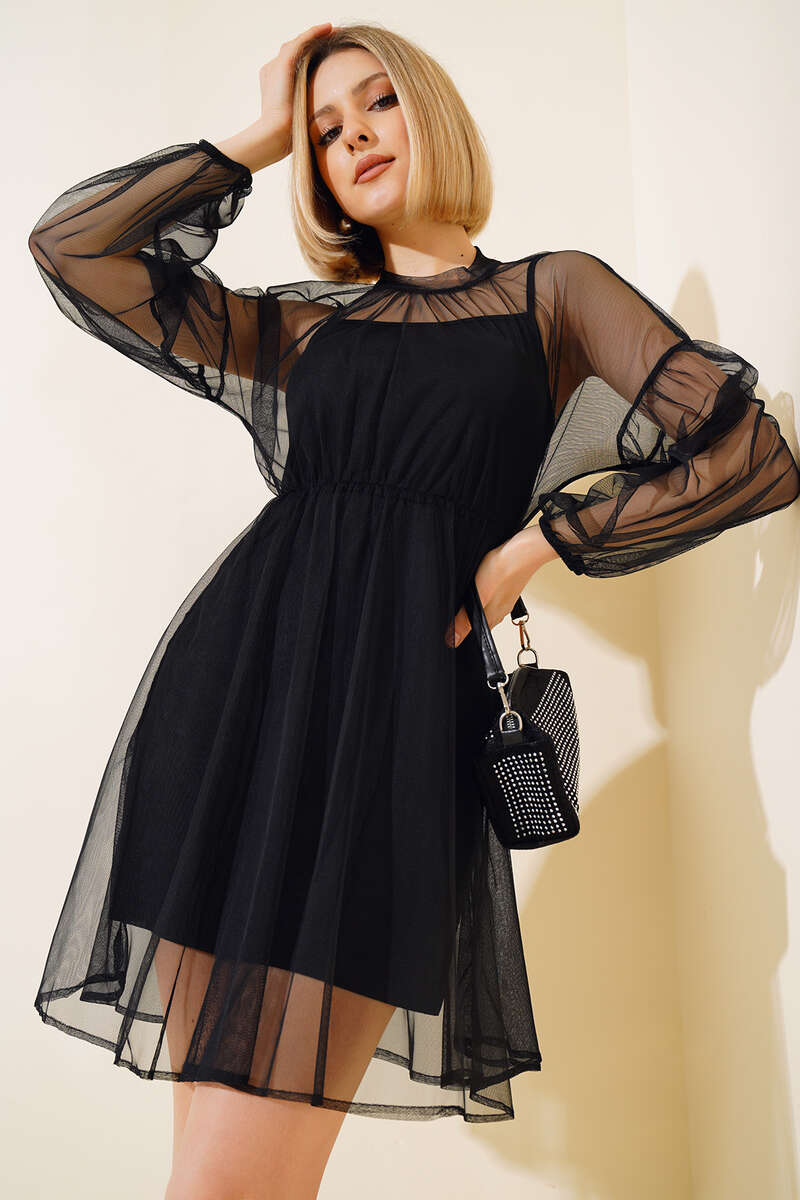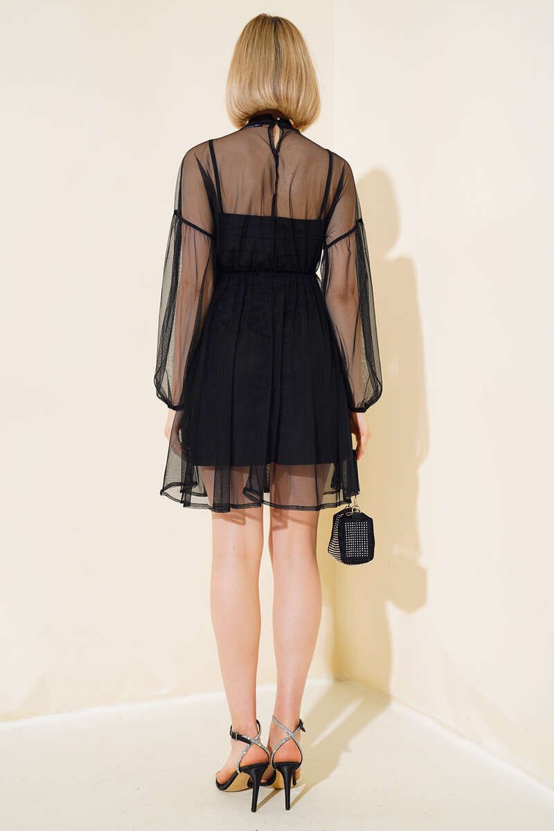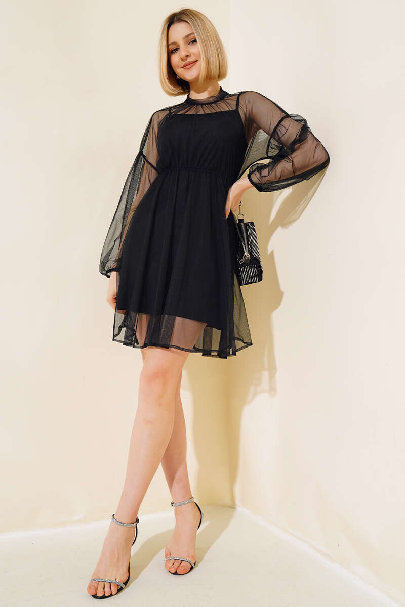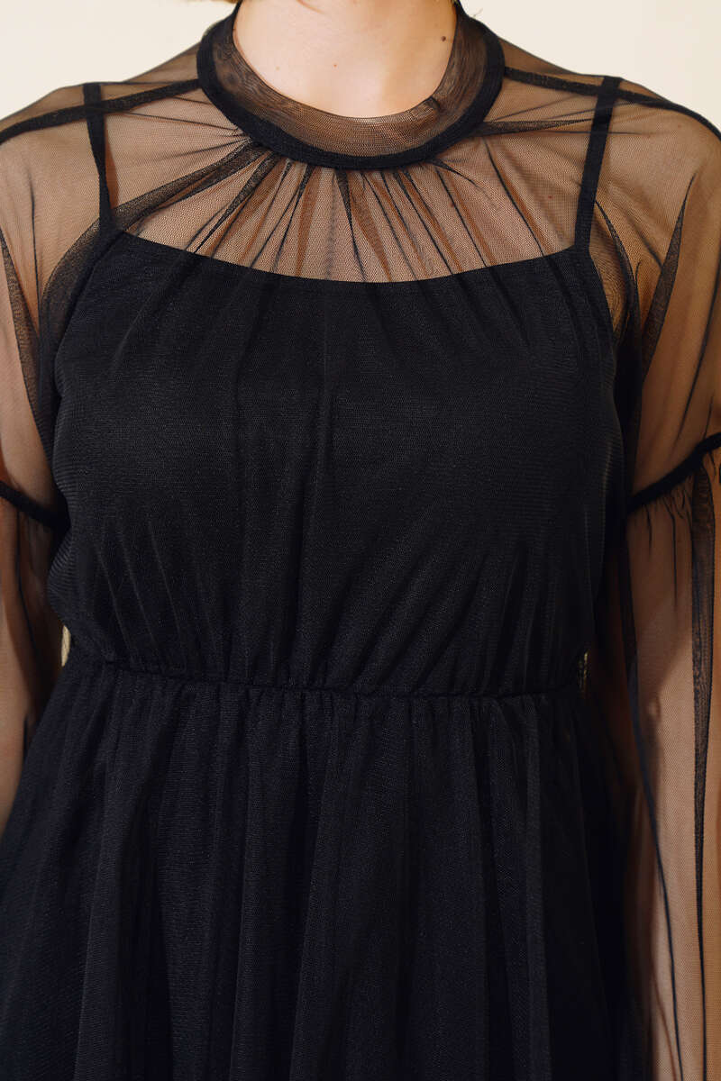 Çıkartılabilir Tüllü Elbise Siyah
