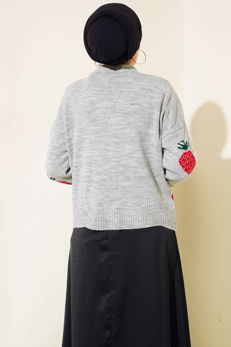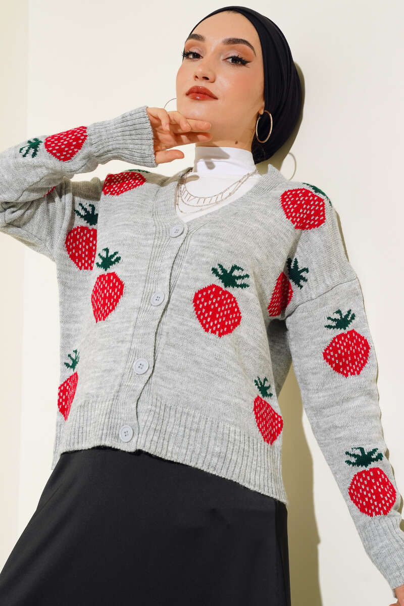 Çilek Desen Kısa Hırka Gri