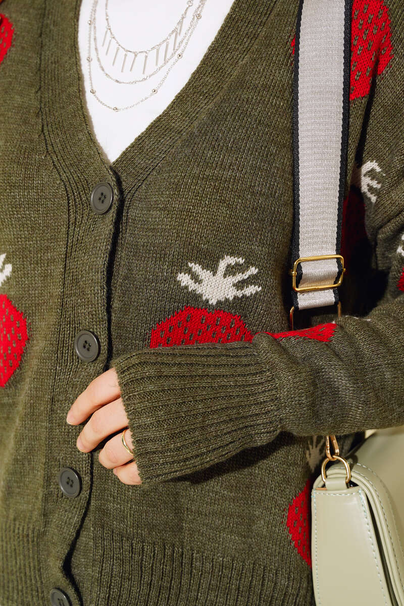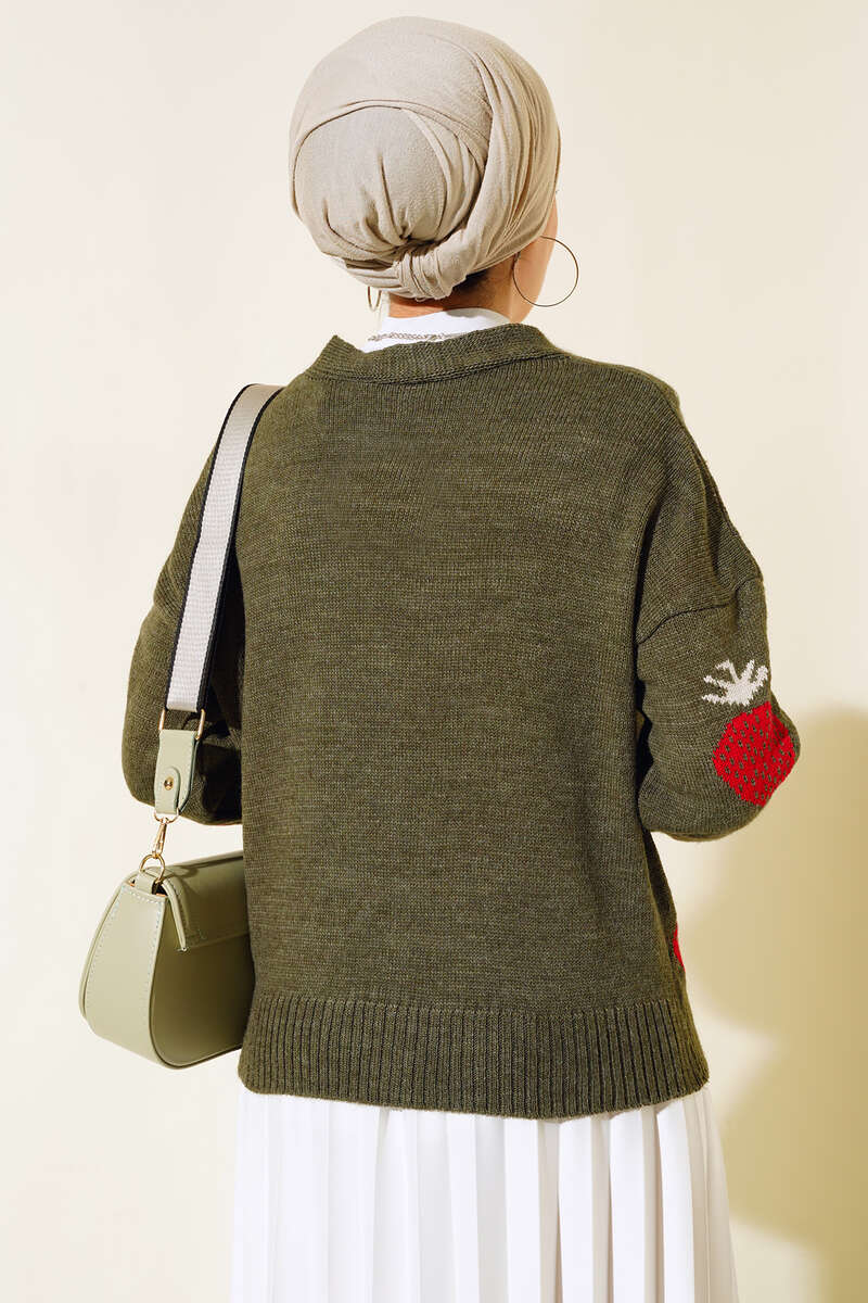 Çilek Desen Kısa Hırka Haki