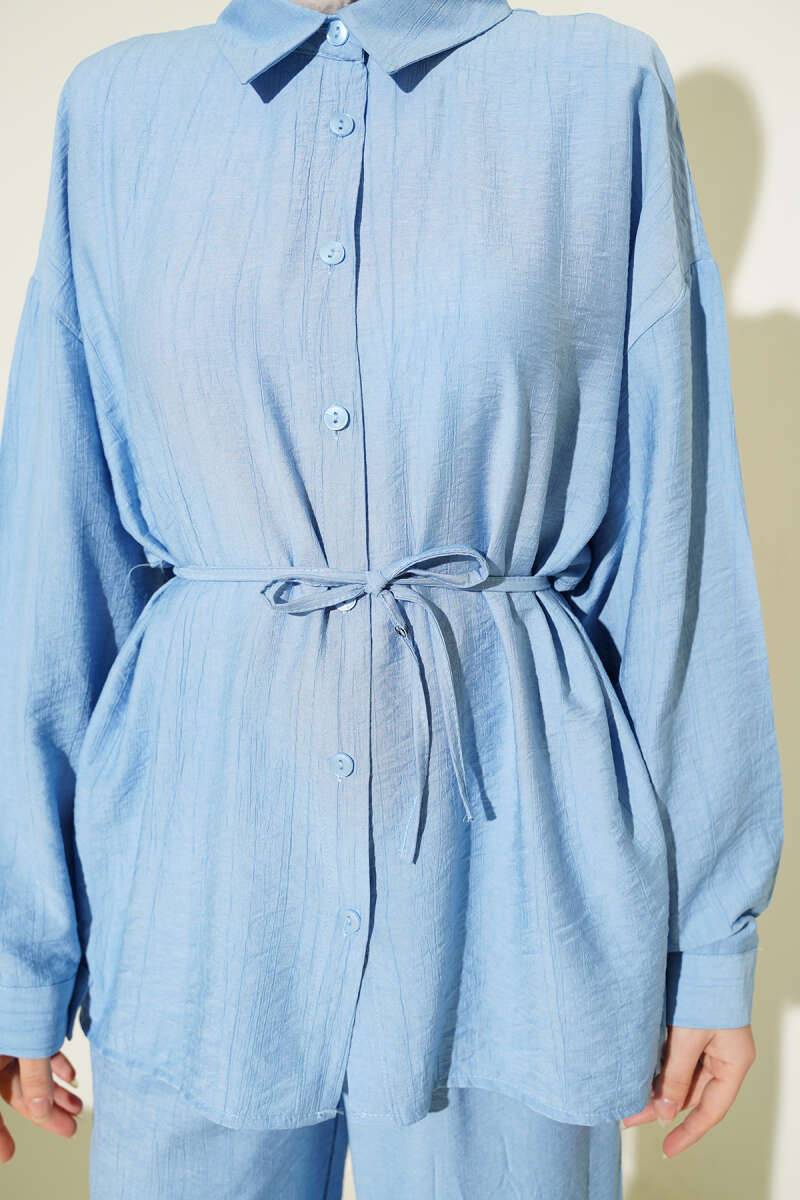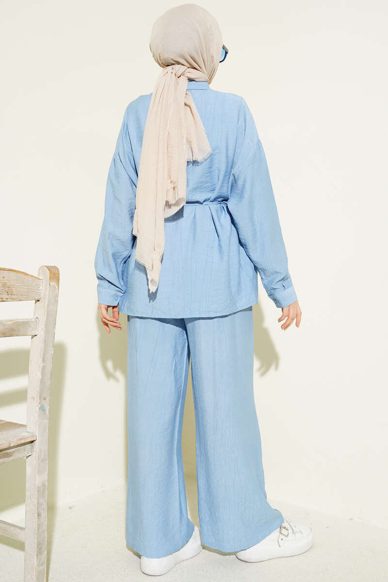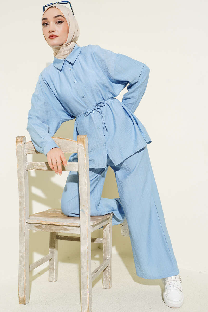 Çilek Kumaş Bel İpli Takım Bebe Mavi