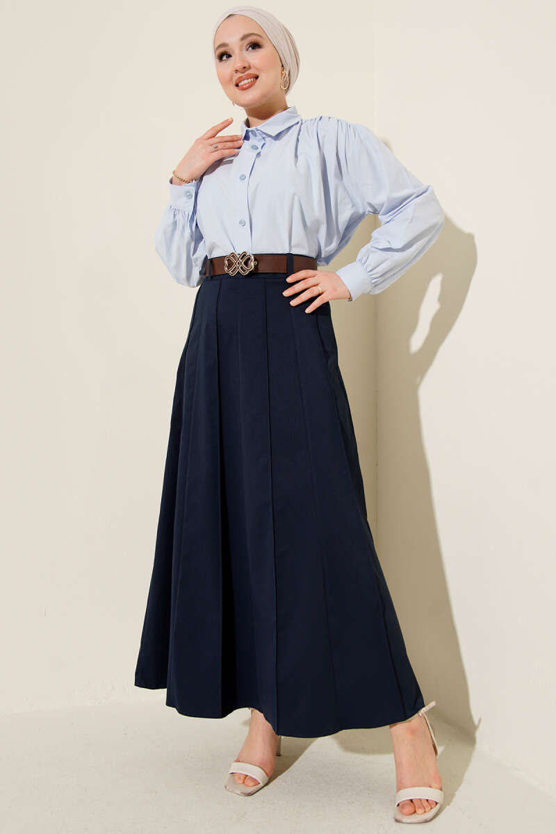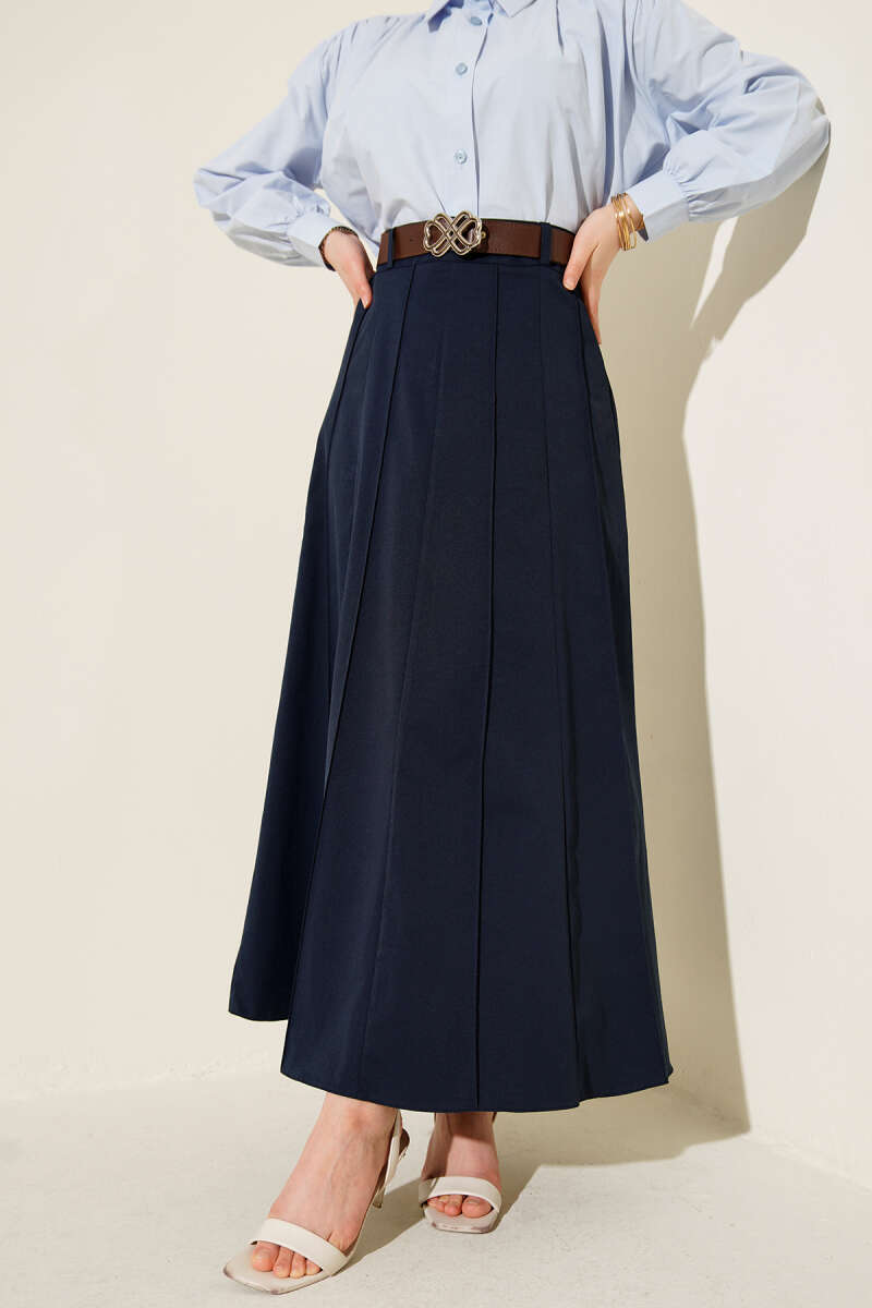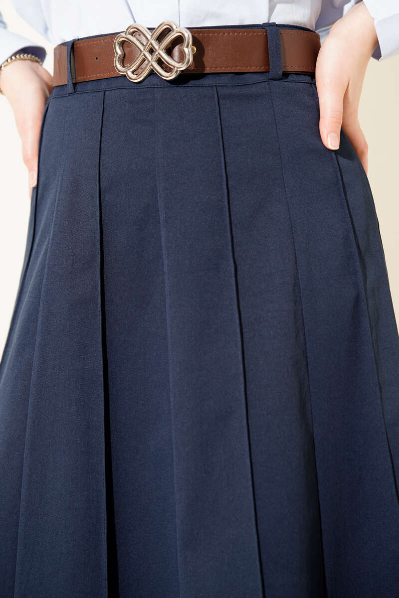 Beli Lastikli Çiçek Dese Pileli Etek Kahve