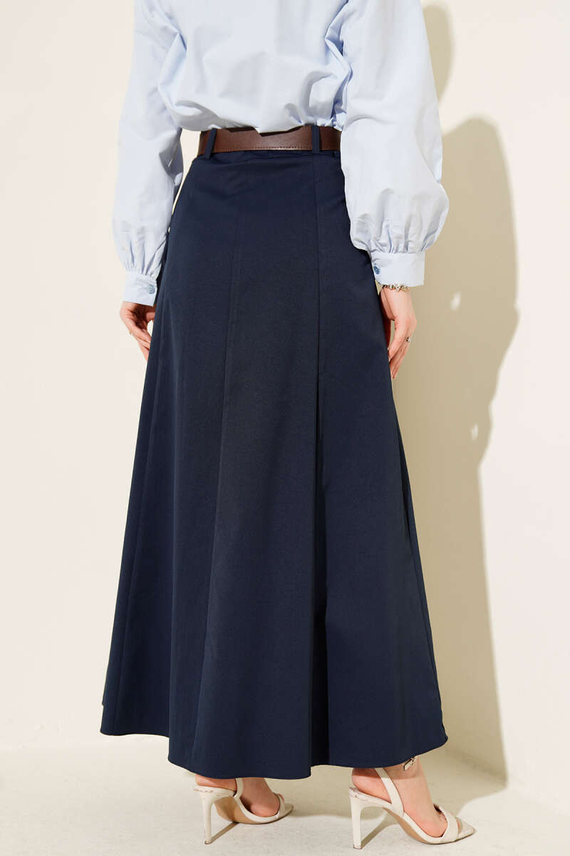 Ekoseli Beli Lastikli Kloş Etek Kestane