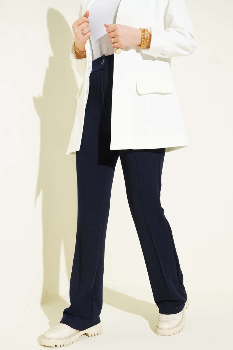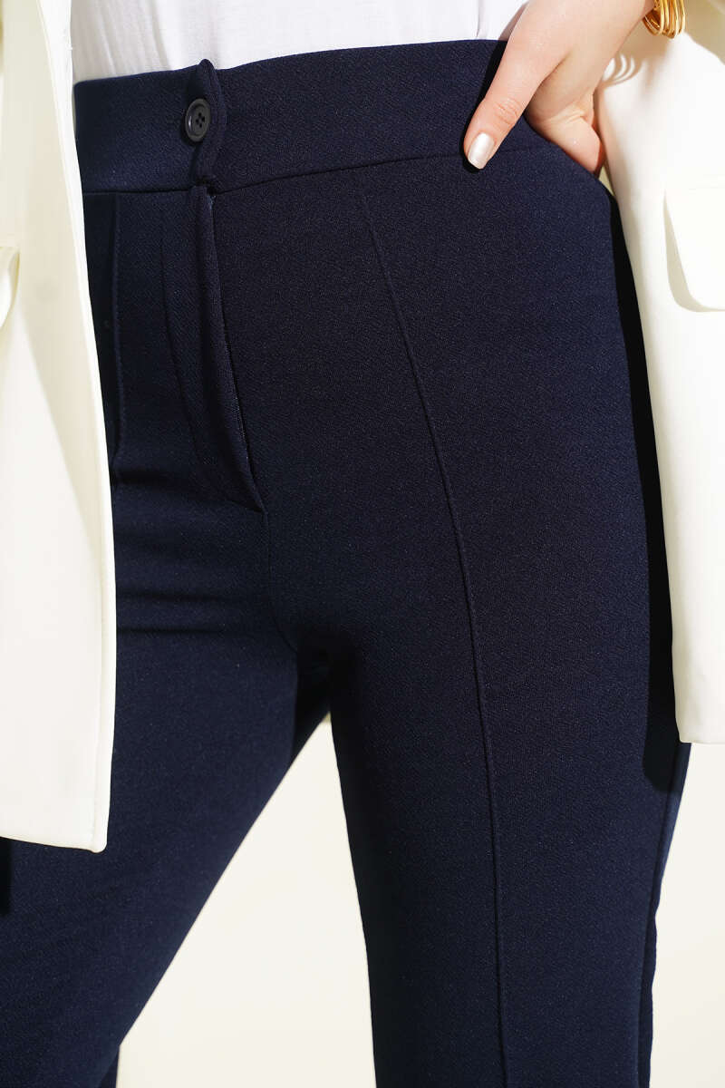 Kemerli Cepli Dar Paça Kumaş Pantolon Lacivert