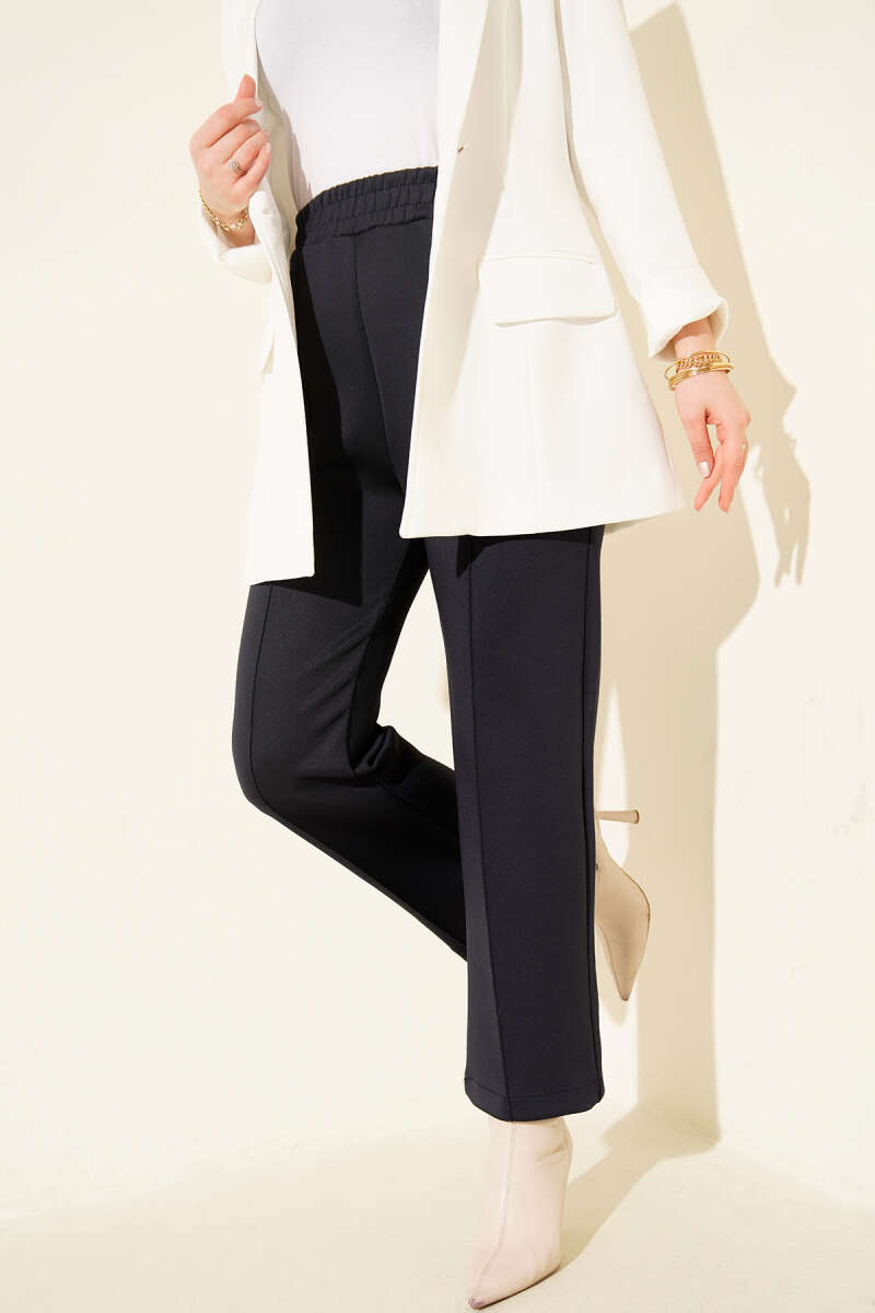 Bol Paça Geniş Bel Lastikli Pantolon Lacivert