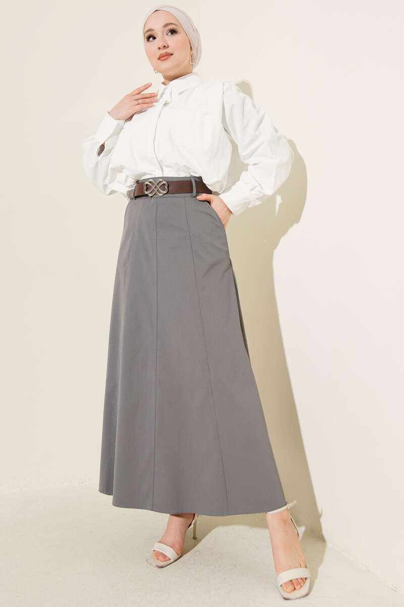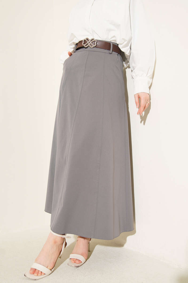 Etnik Desenli Kemerli Kloş Etek Siyah