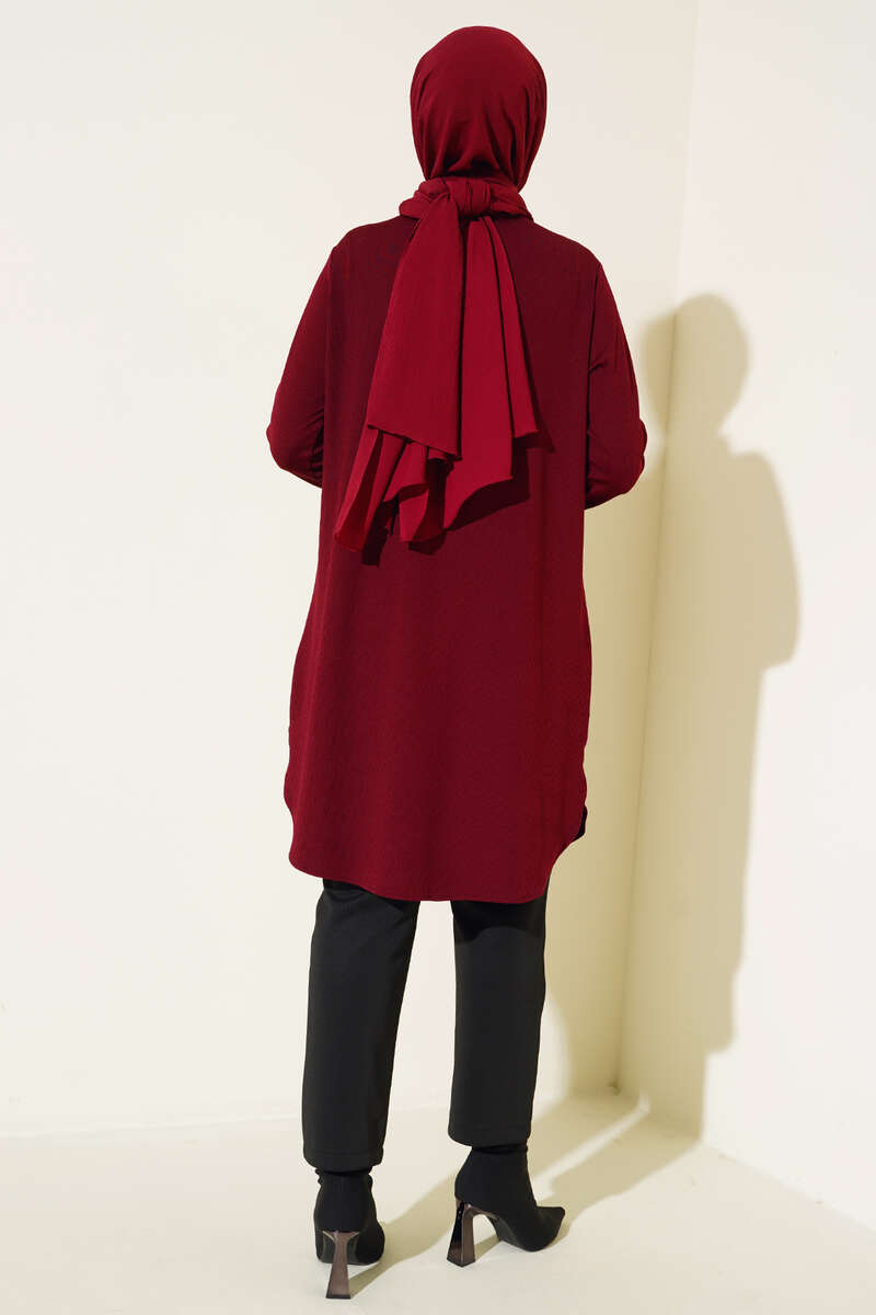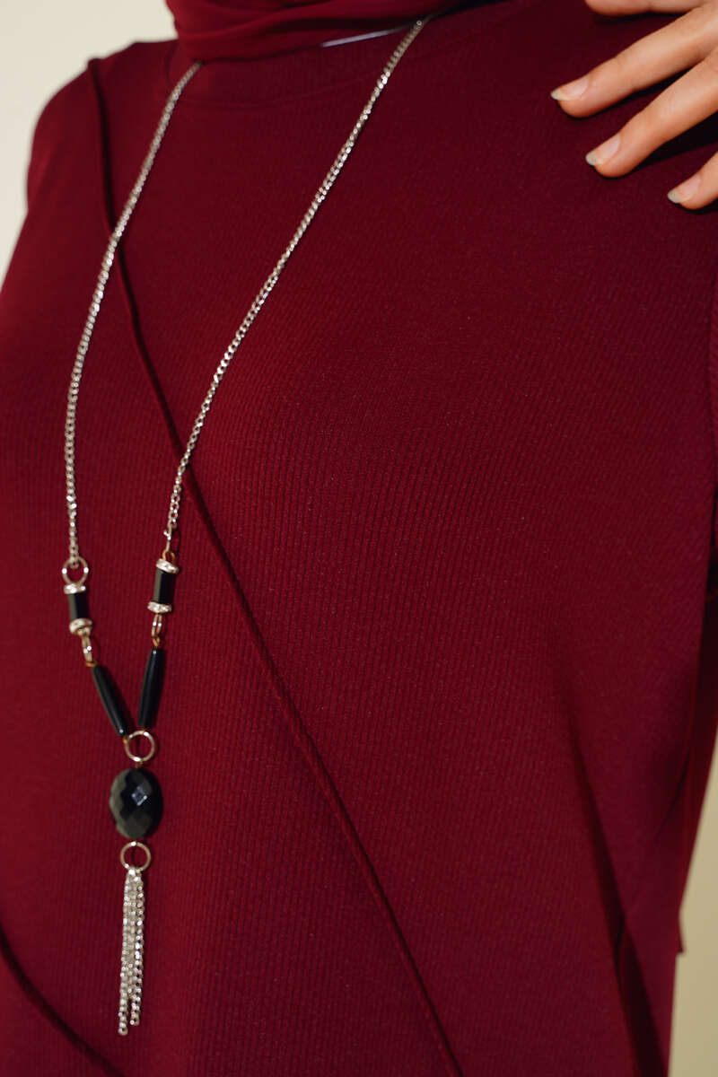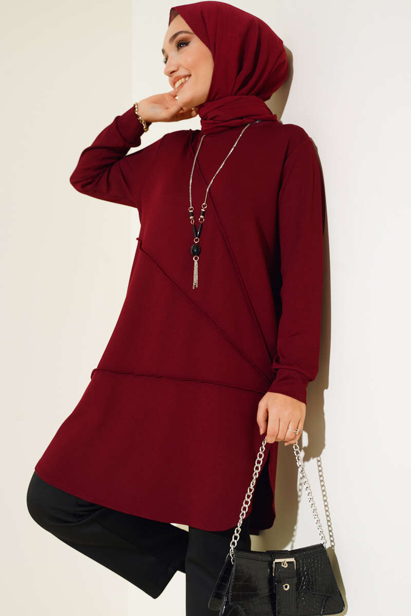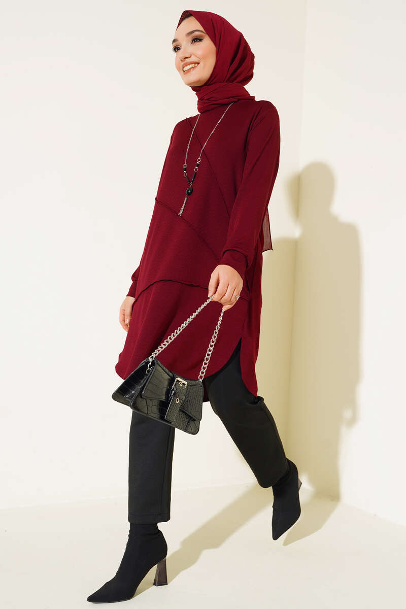 Yeni modeller arasında olan tuniğimiz tasarımı ve rahatlığı ile dikkat çekmekte. Tuniğimiz çimalı modeldir. Etek kısmı oval kesime sahiptir. Taşlı zincir kolyesi mevcuttur. Renk seçenekleri bulunmaktadır.