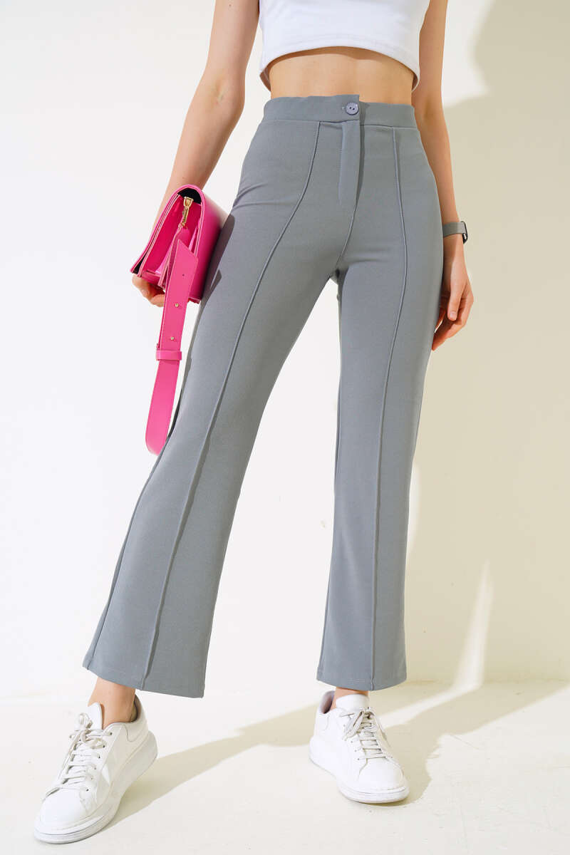 Çımalı Krep Pantolon Gri