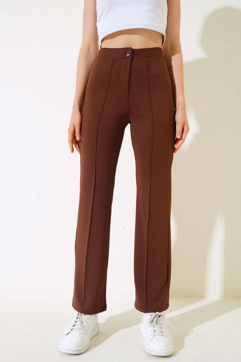 Çımalı Krep Pantolon Kahve