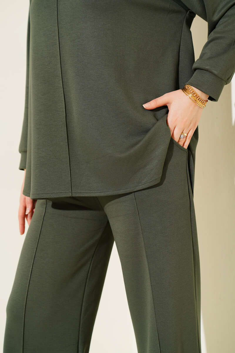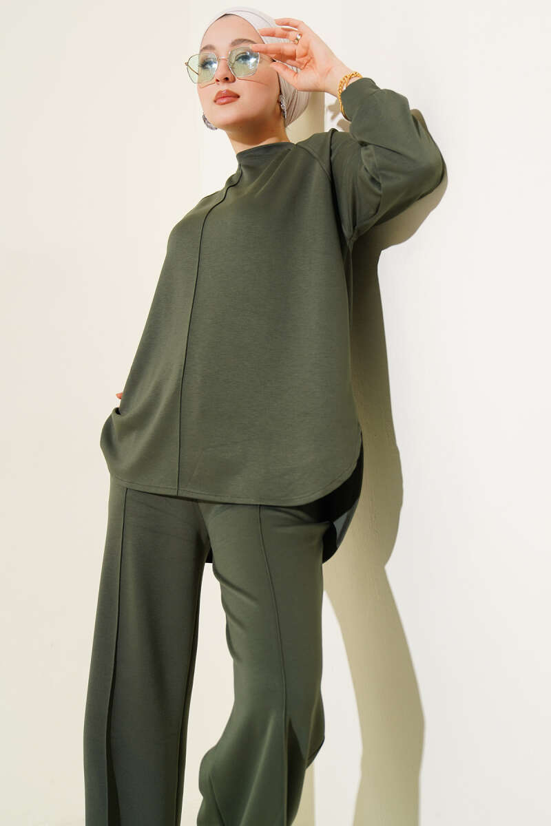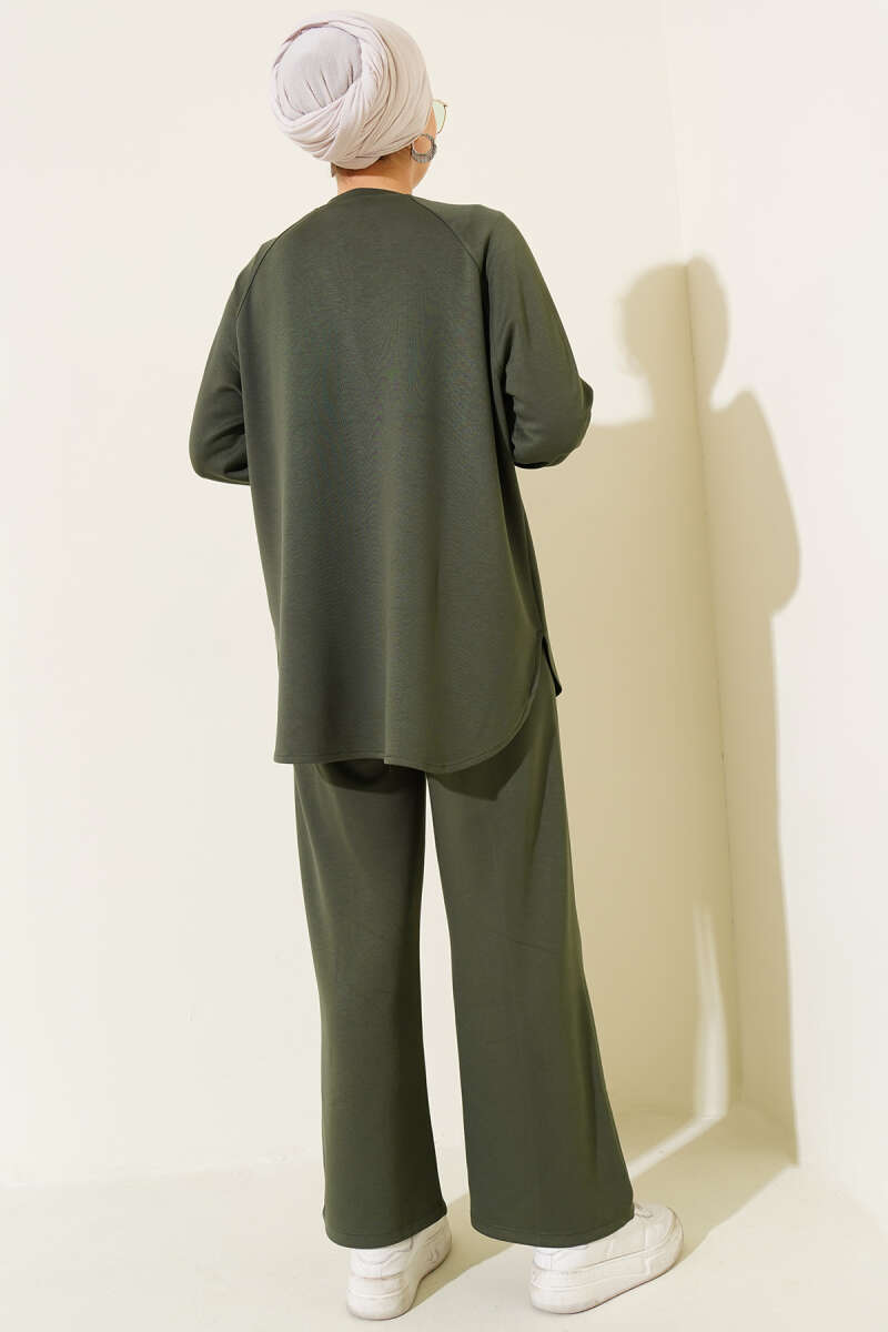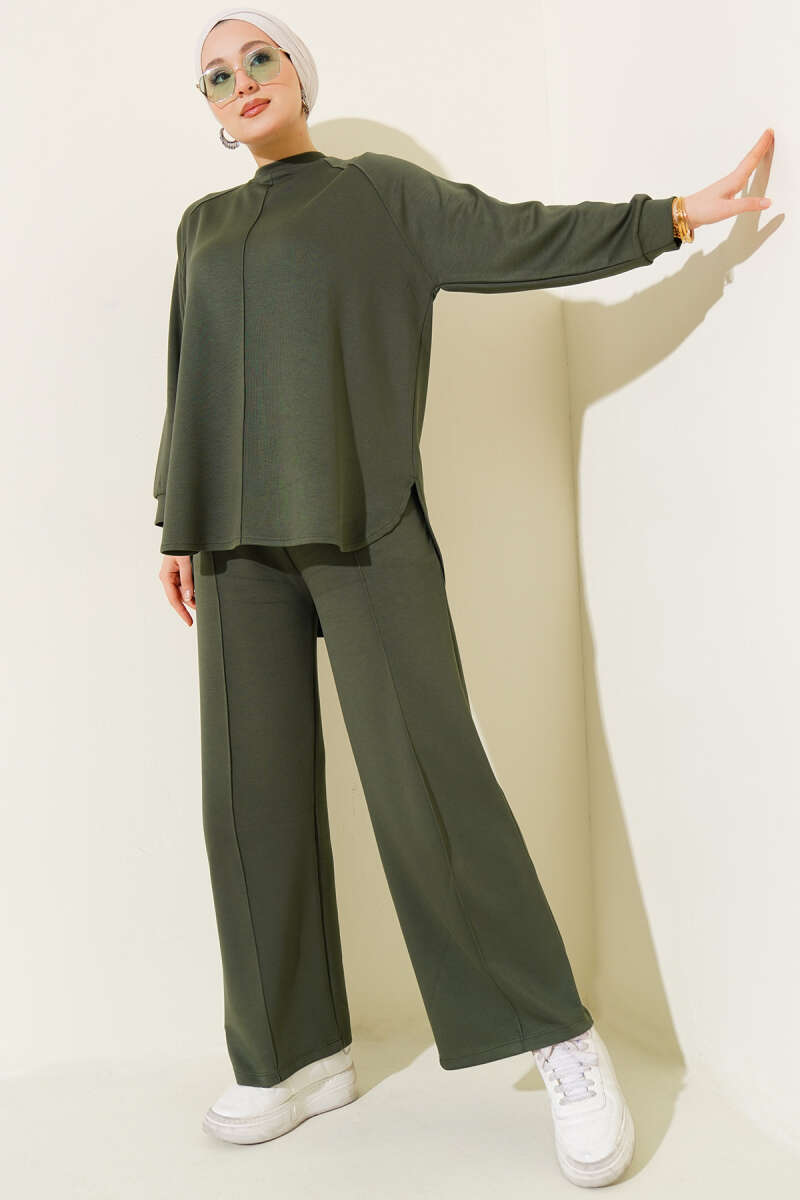 Loyşa Taş Süslemeli Fermuarlı İkili Takım Çağla Yeşili