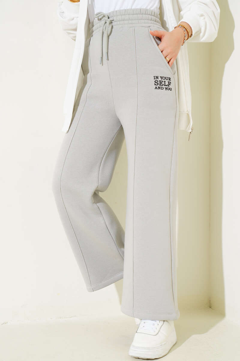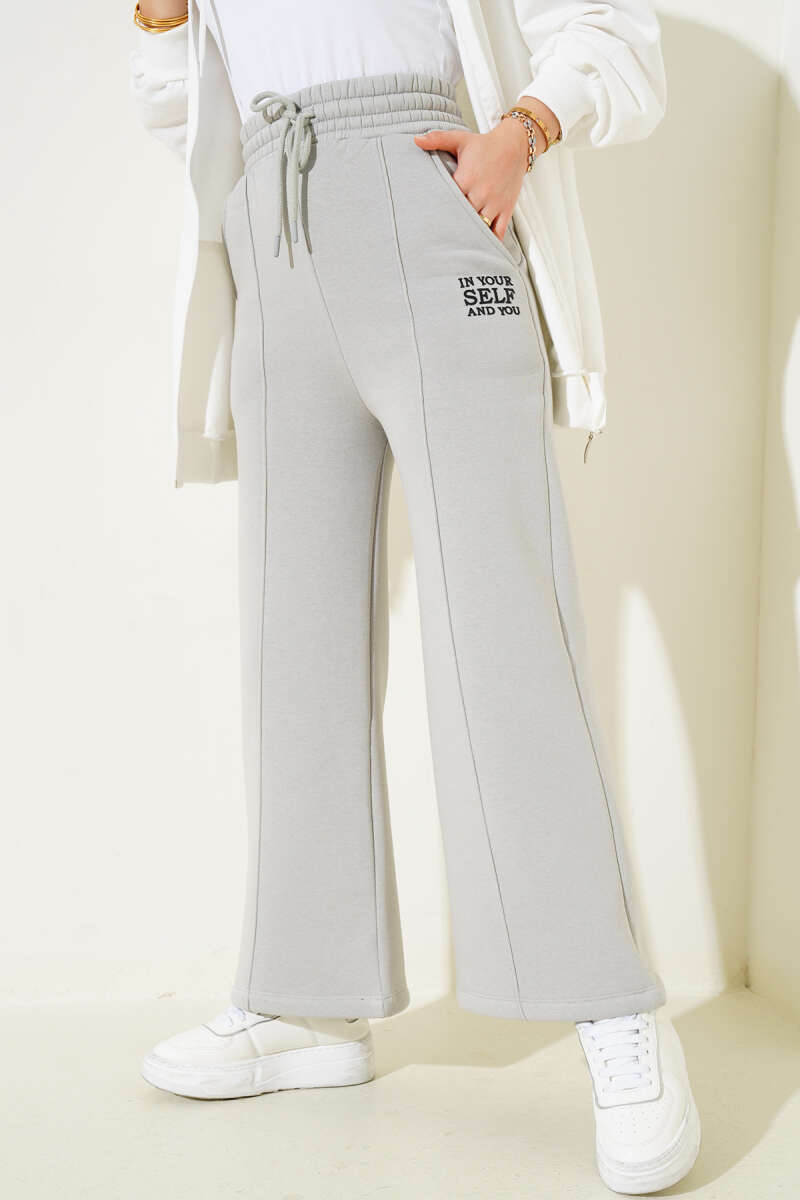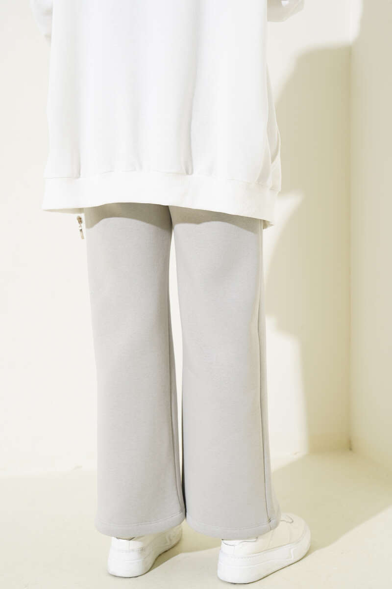 Çımalı Üç İplik Bol Paça Pantolon Gri