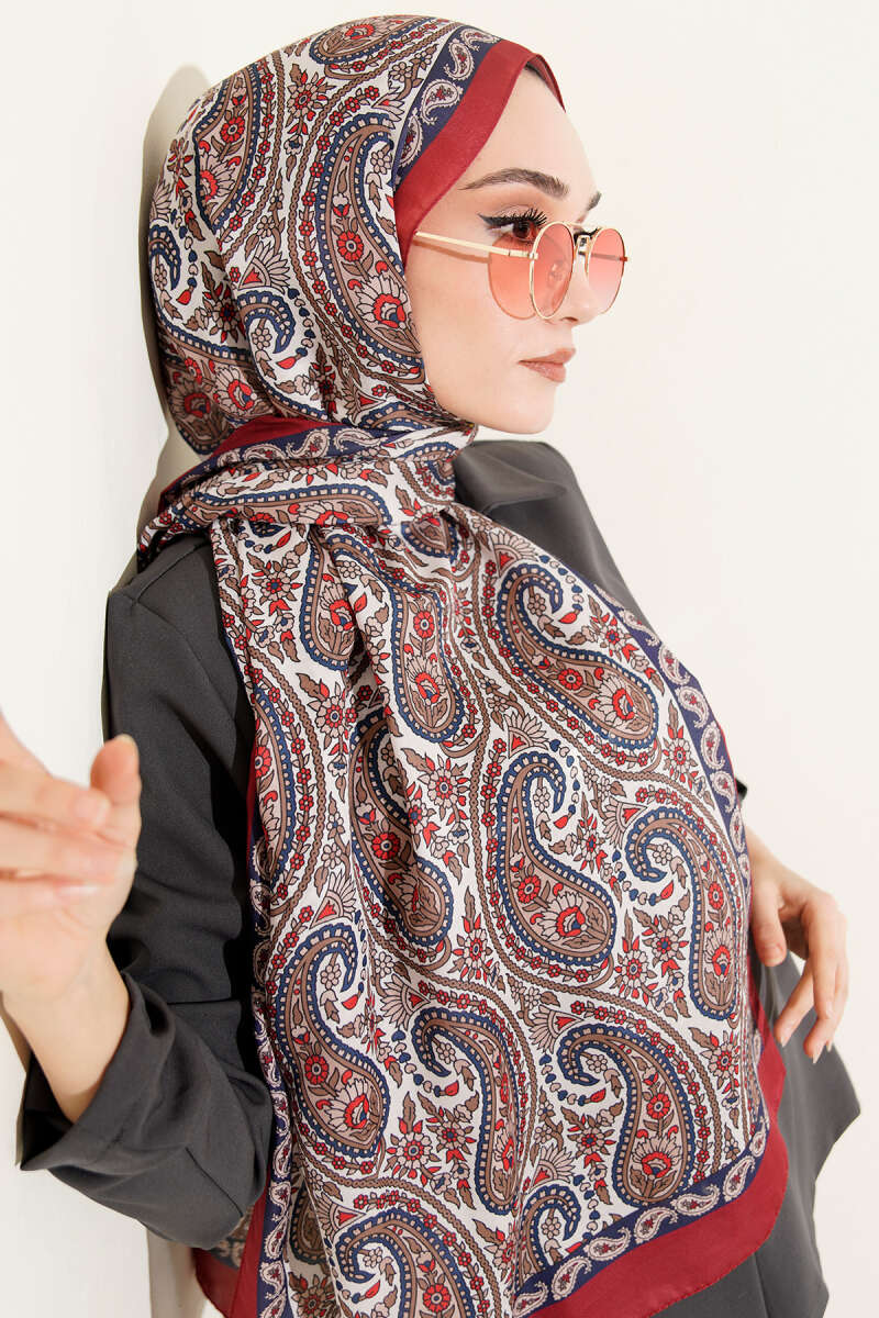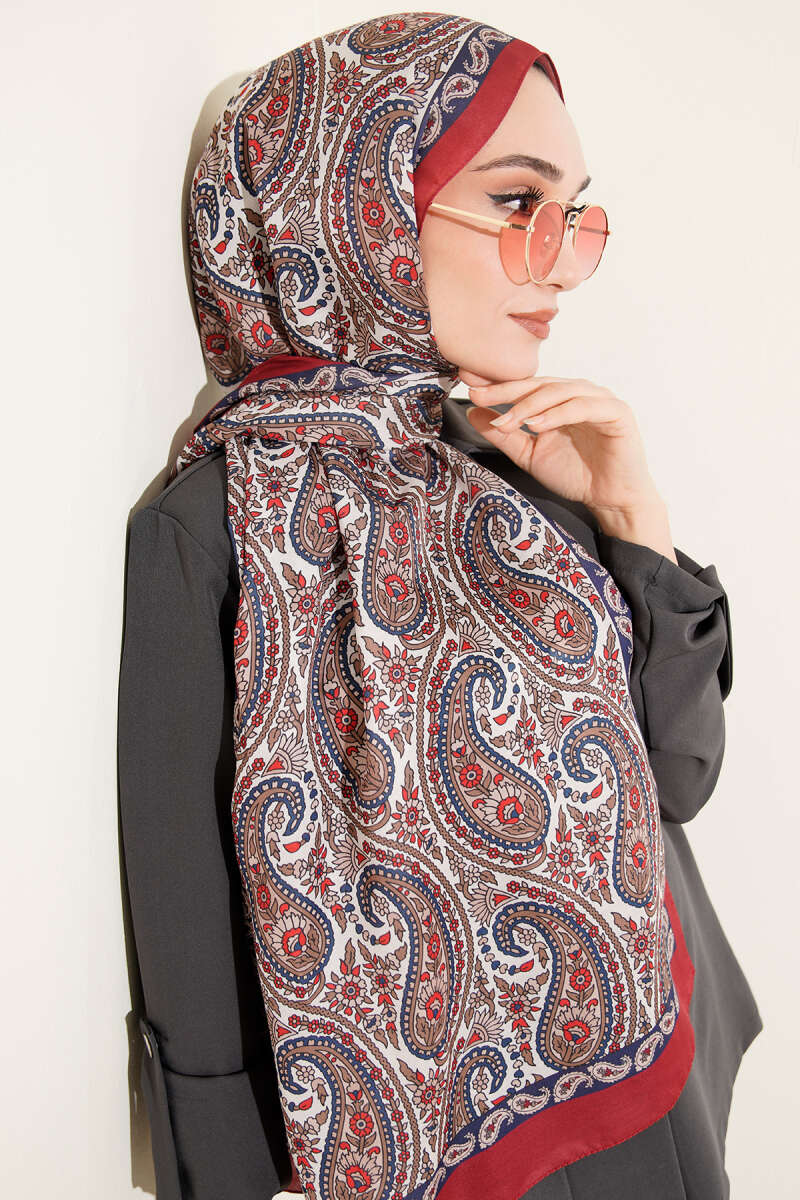 Çini Paisley Desen Şal Bordo