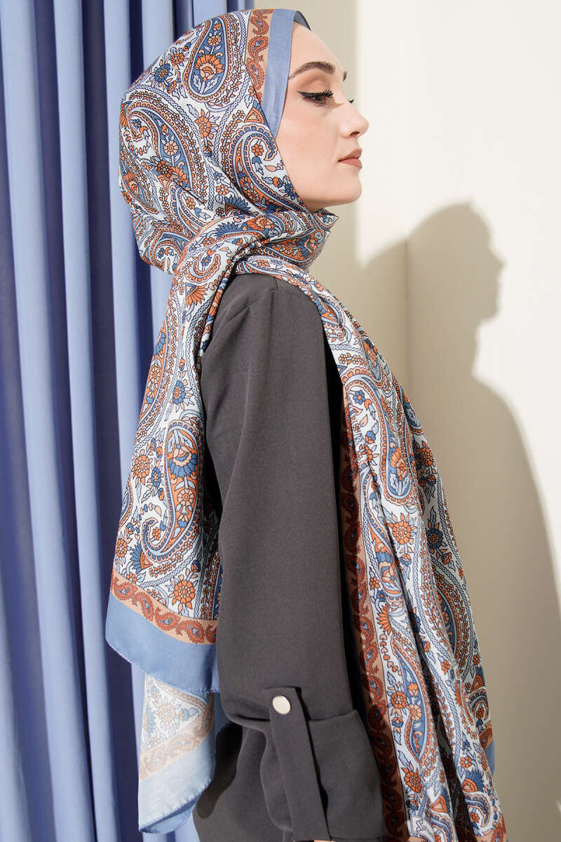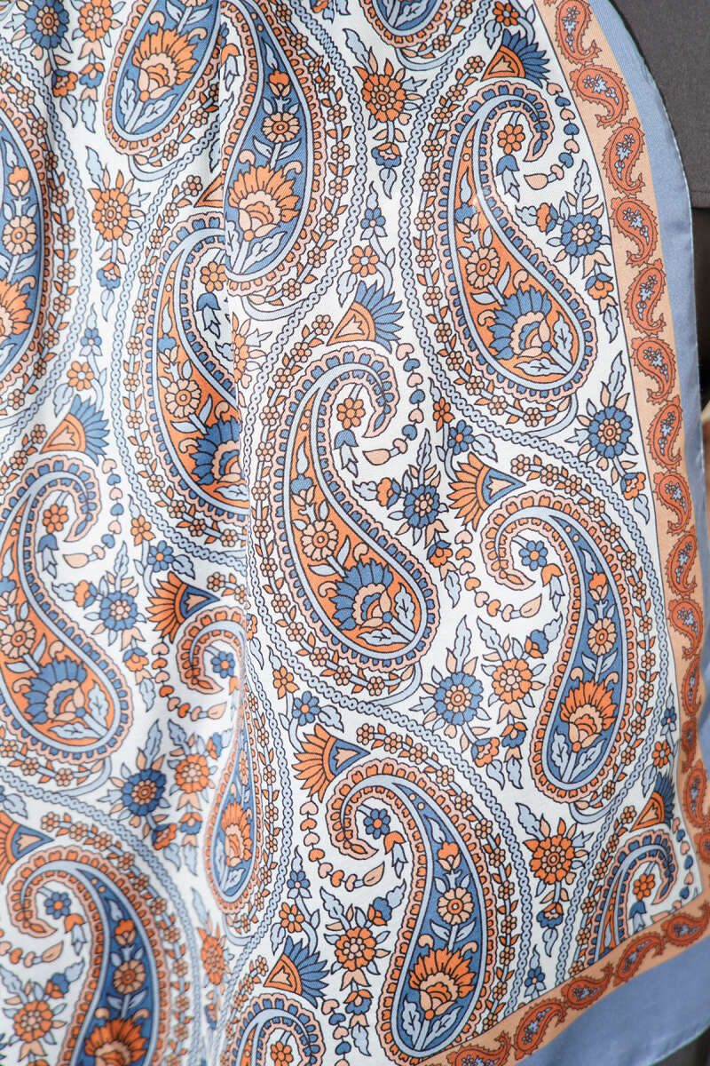 Çini Paisley Desen Şal Soft Mavi