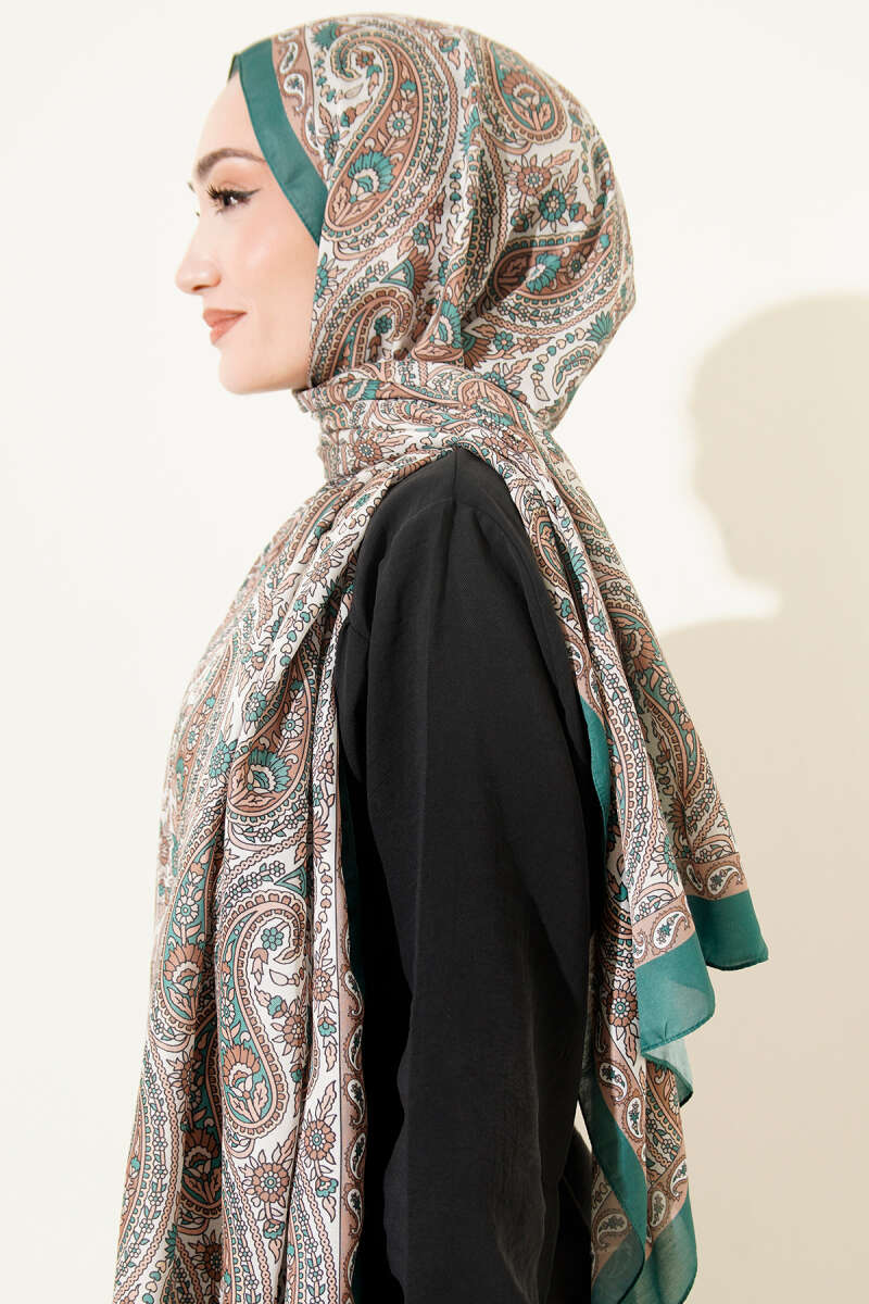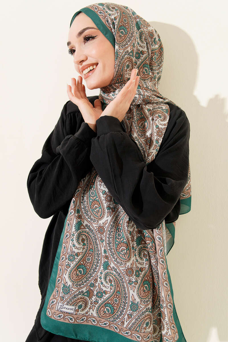 Çini Paisley Desen Şal Zümrüt