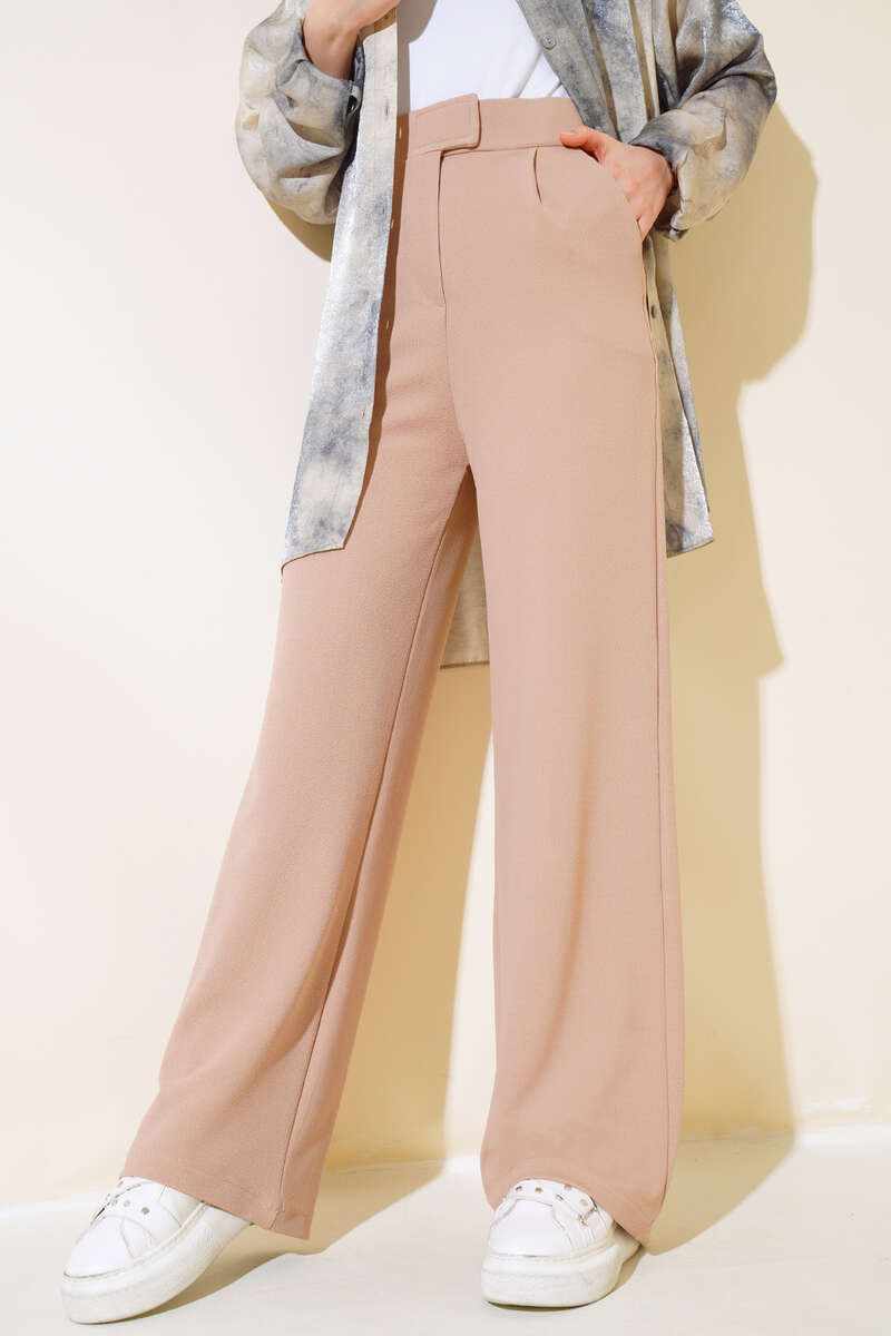 Bel Kemer Tokalı Palazzo Pantolon Vizon