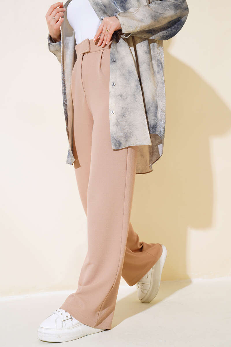 Geniş Bel Lastikli Çımalı Pantolon Bej