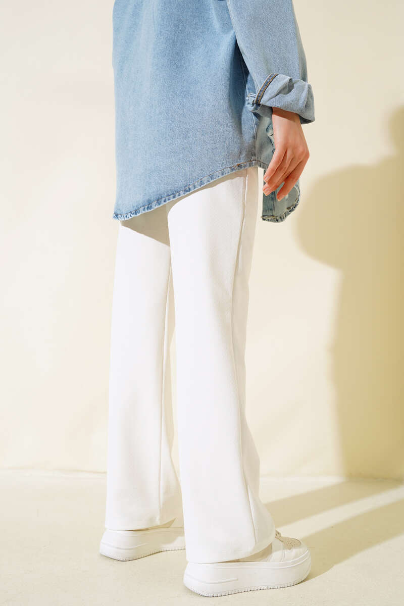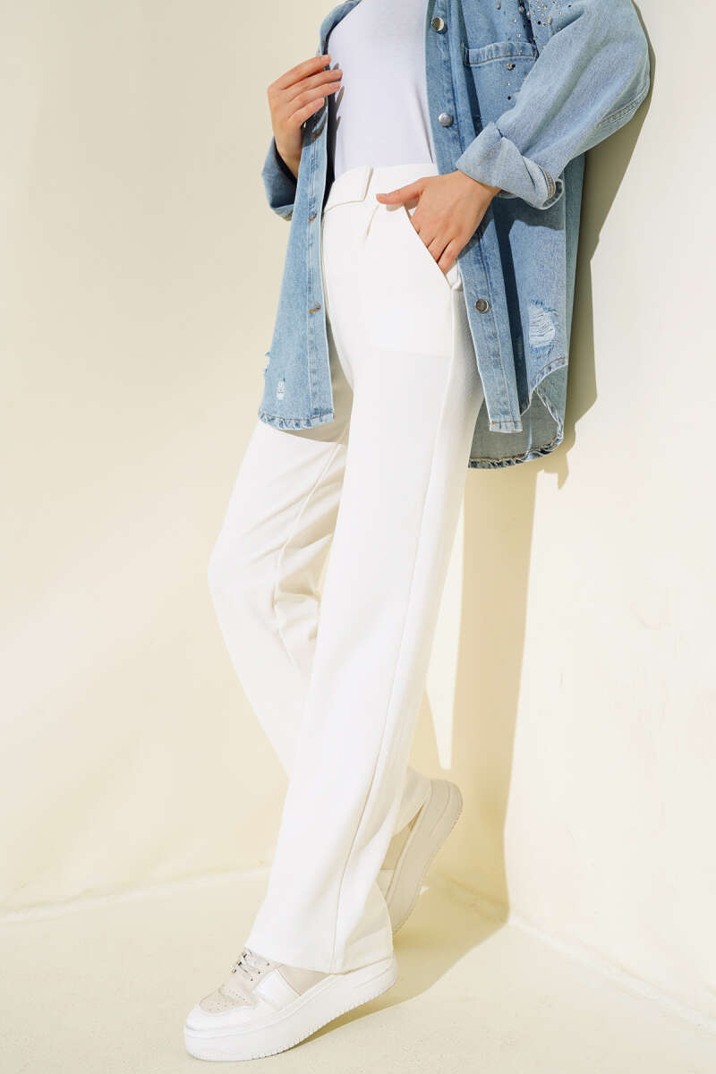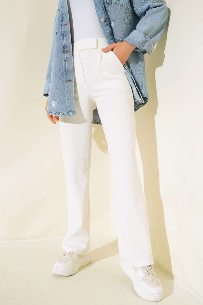 Cırtcırtlı Tek Pile Pantolon Ekru