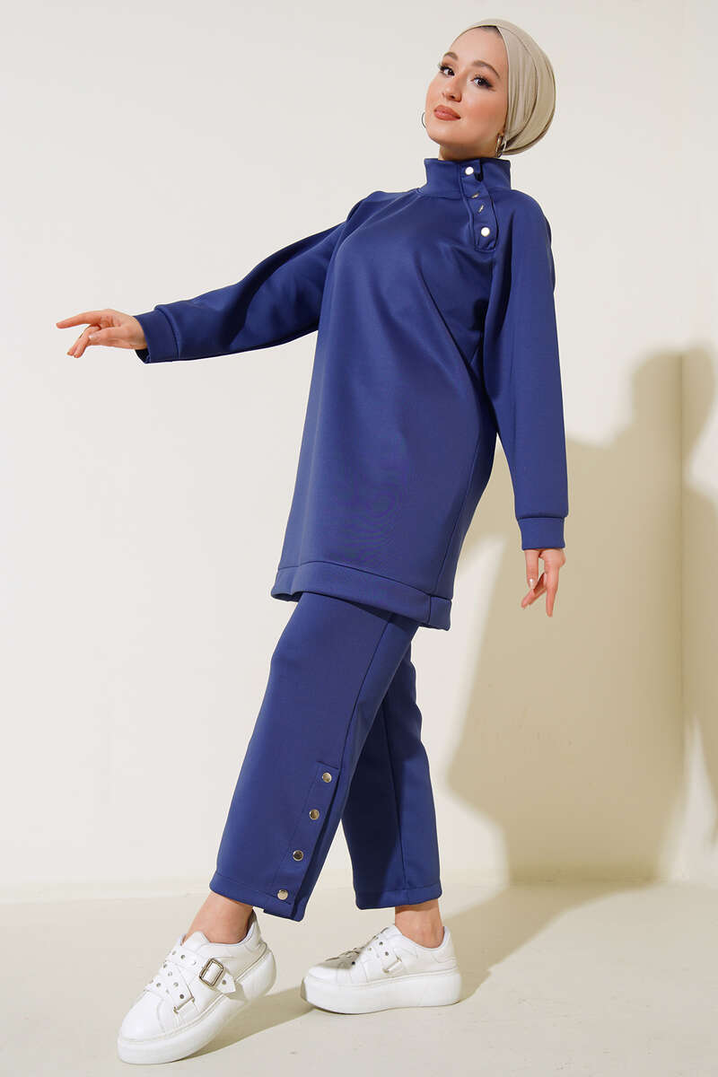 Çıt Çıt Düğme Scuba Kumaş İkili Takım İndigo