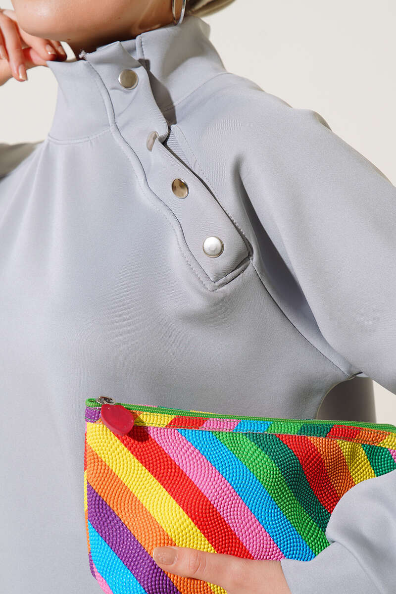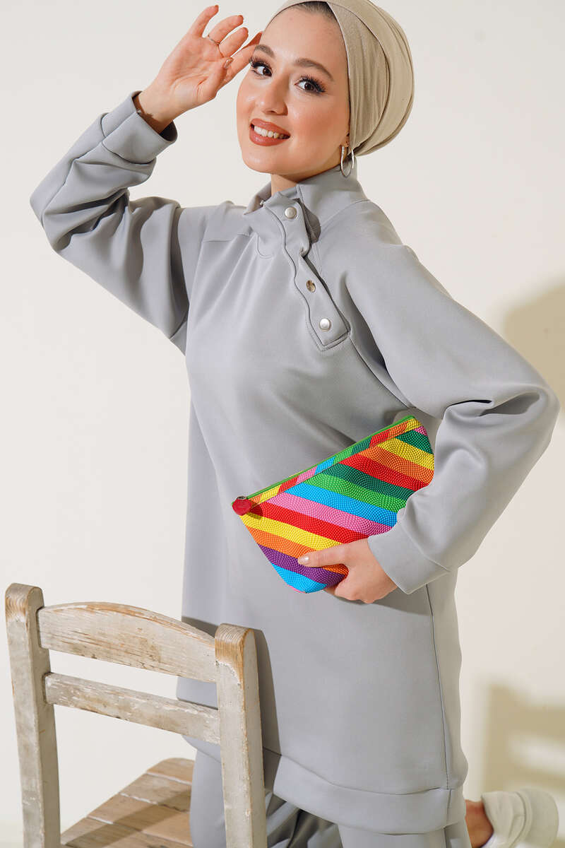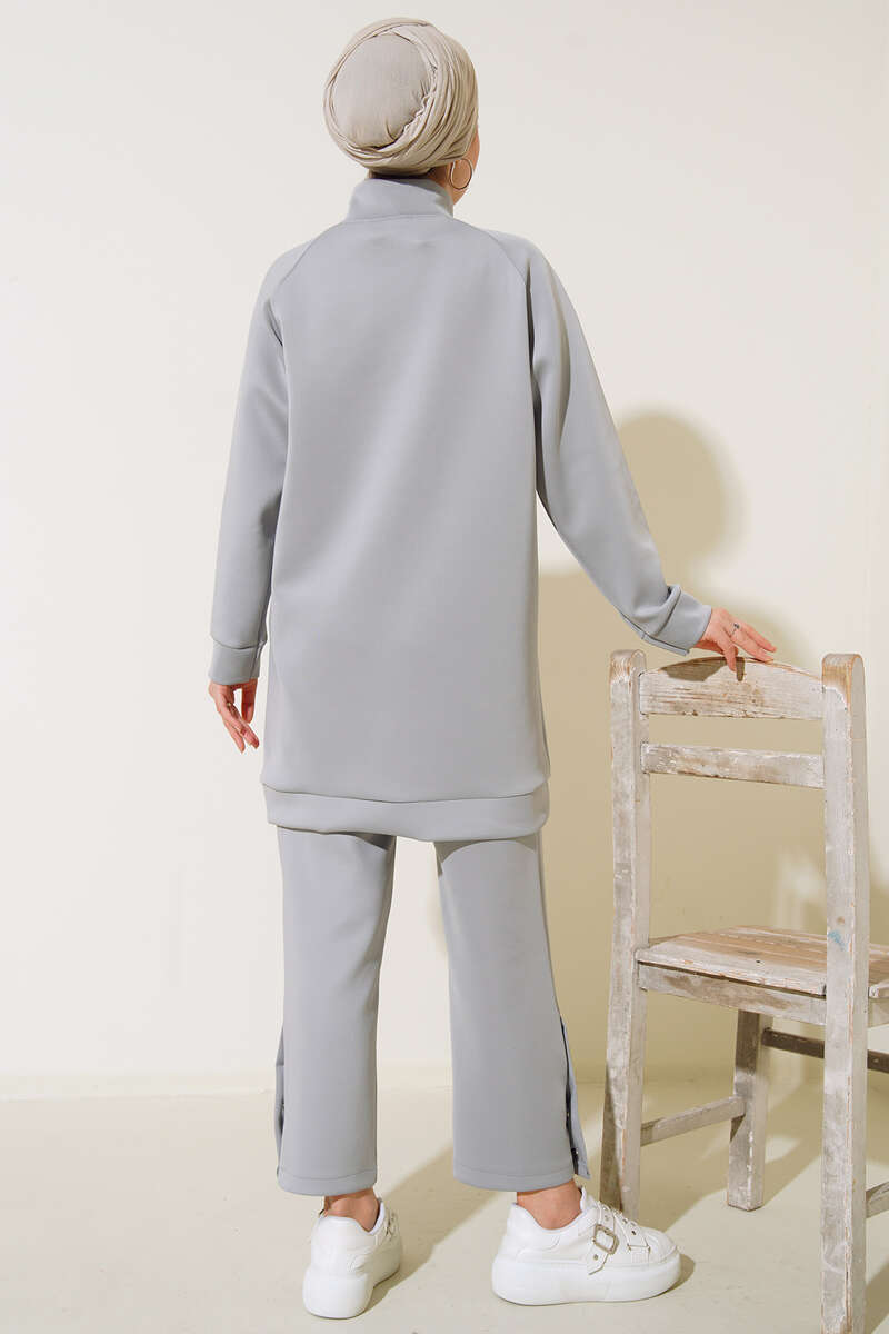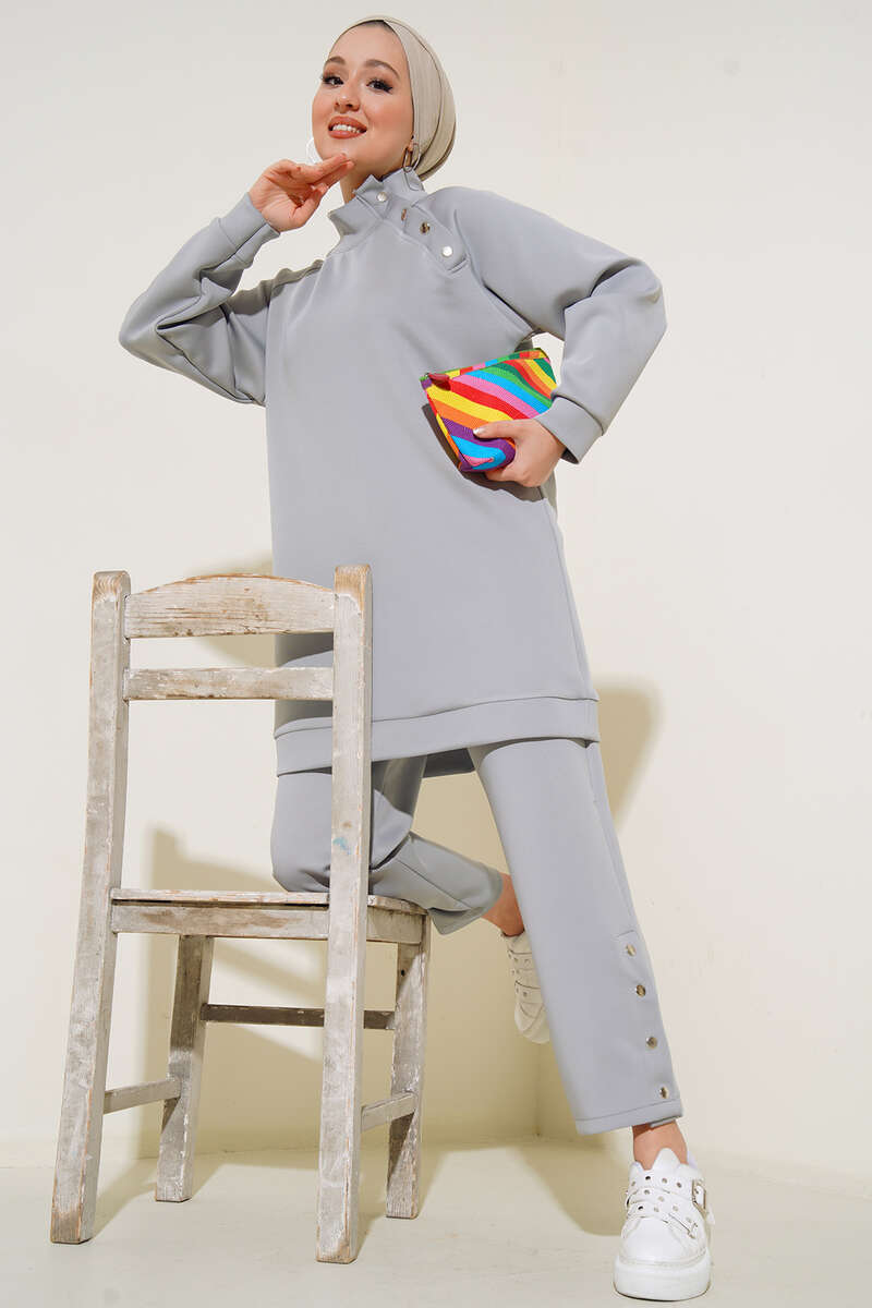 Çıt Çıt Düğme Scuba Kumaş İkili Takım Kayrak Grisi