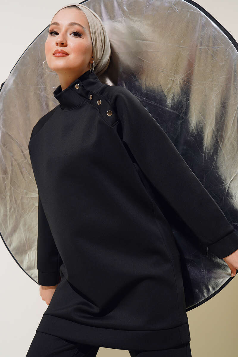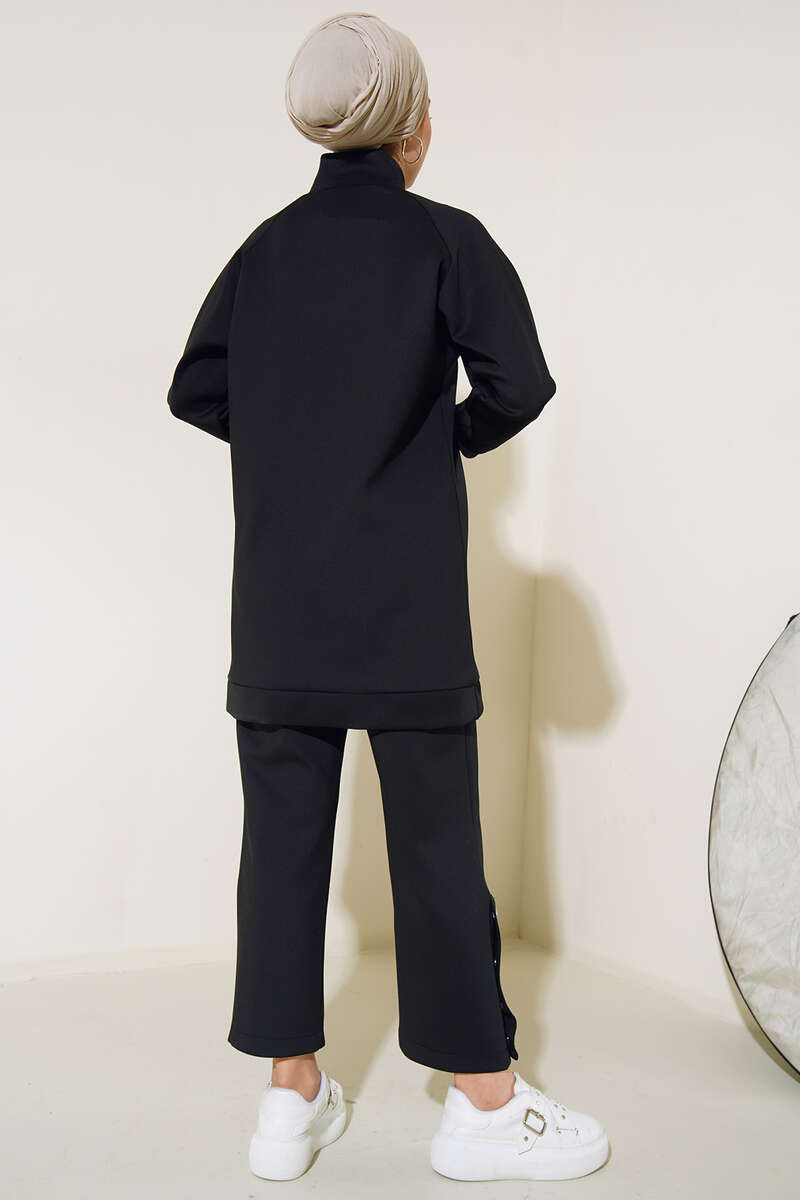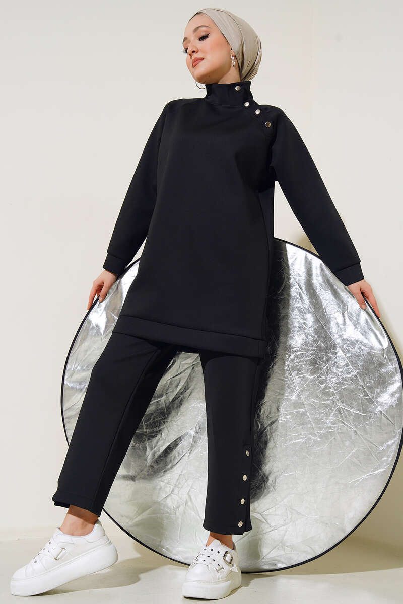 Çıt Çıt Düğme Scuba Kumaş İkili Takım Siyah