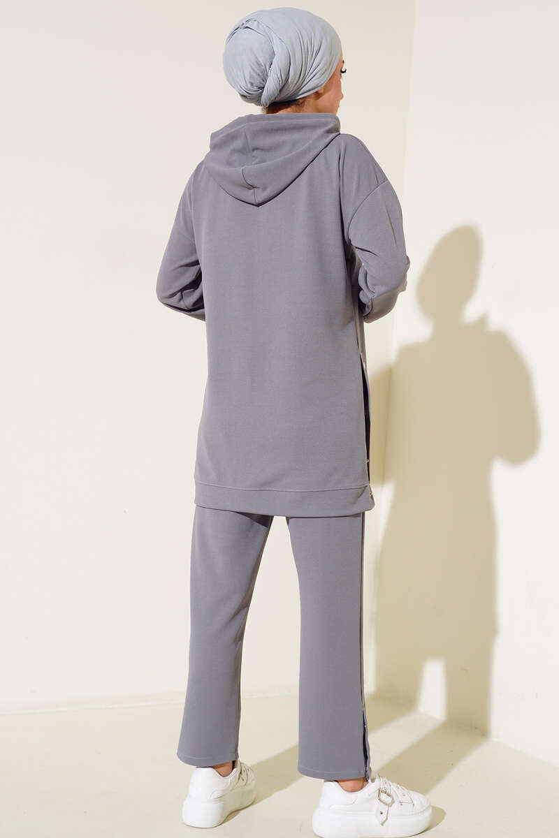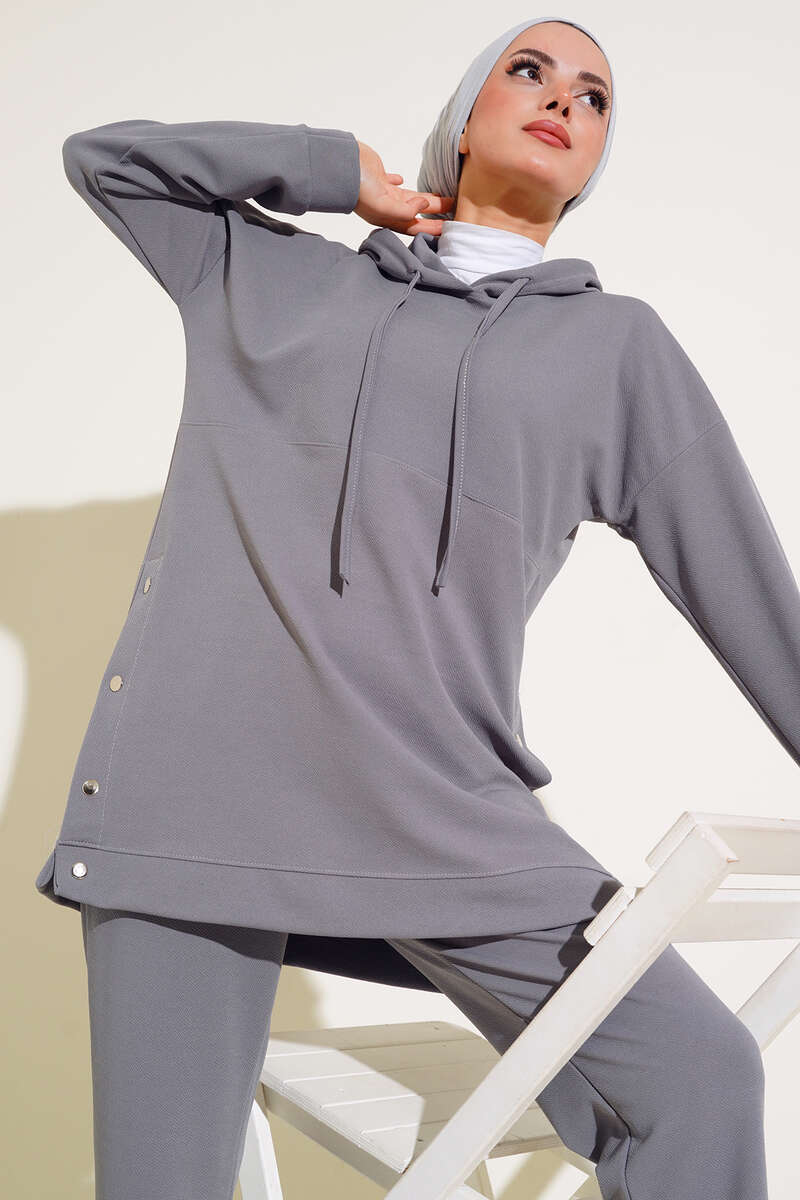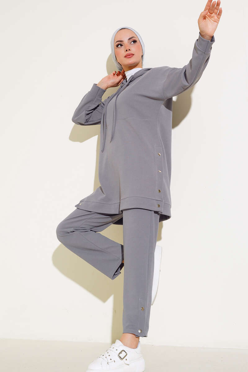 Çıtçıt Detaylı Kapüşonlu İkili Takım Gri
