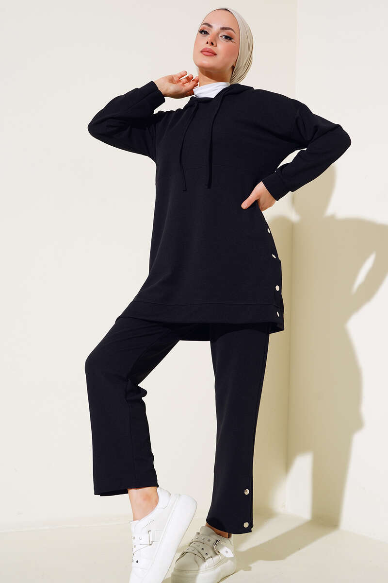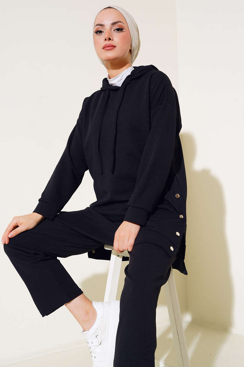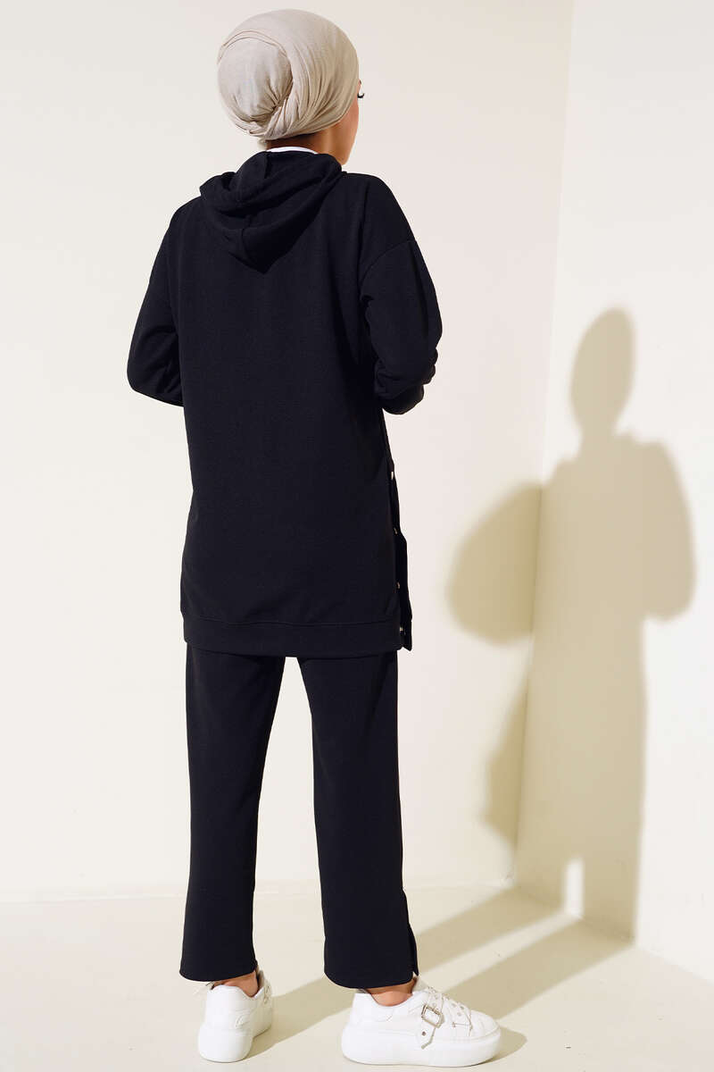 Çıtçıt Detaylı Kapüşonlu İkili Takım Siyah