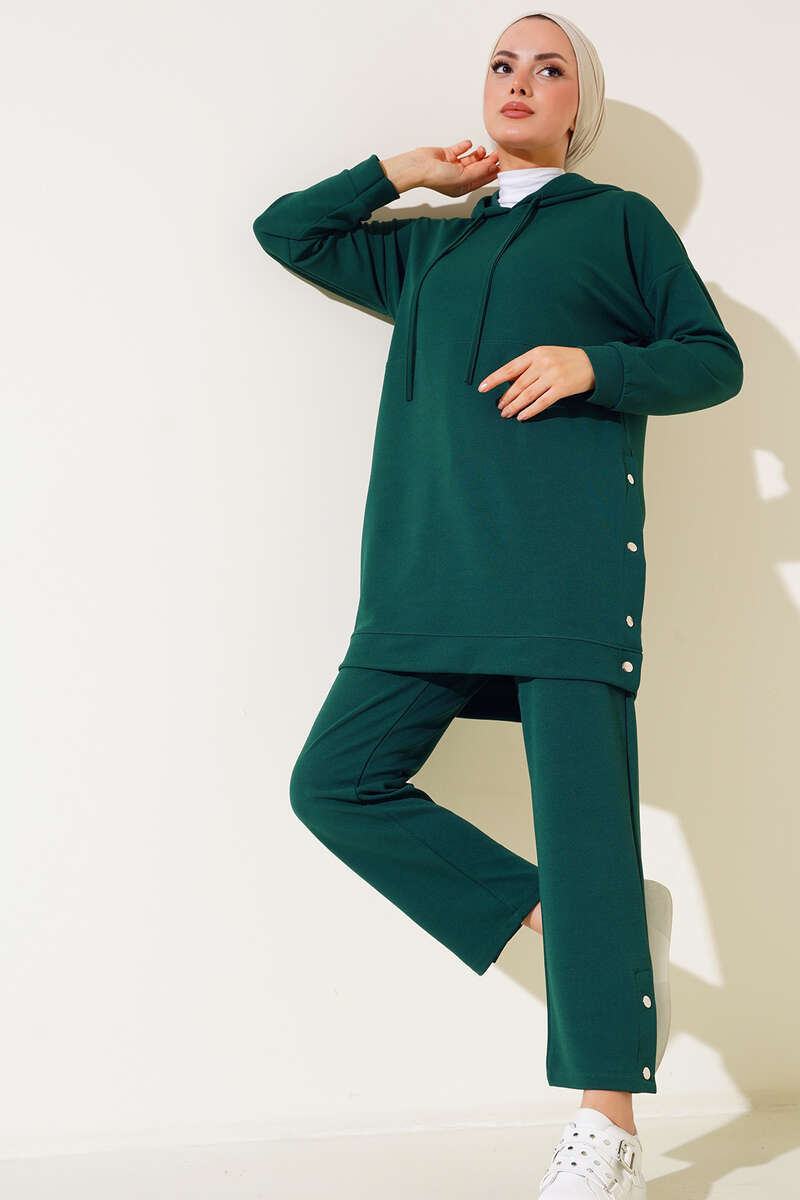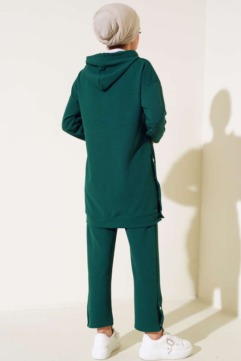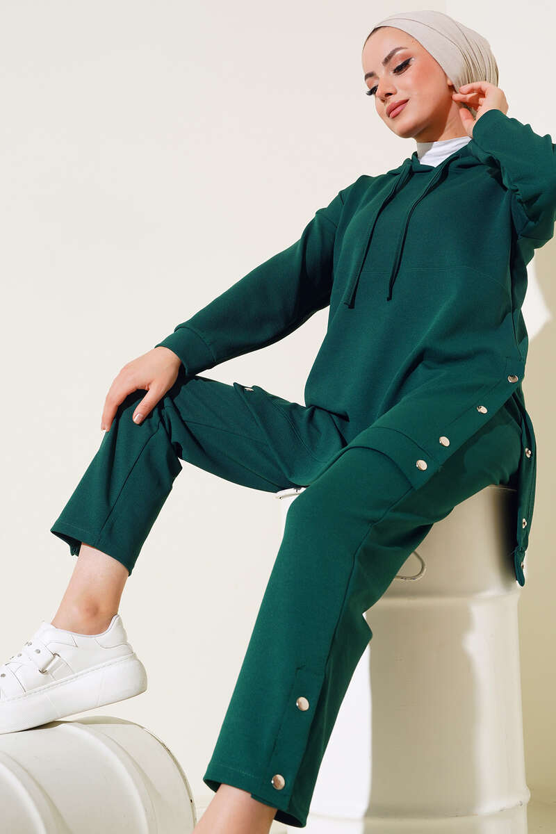 Çıtçıt Detaylı Kapüşonlu İkili Takım Zümrüt