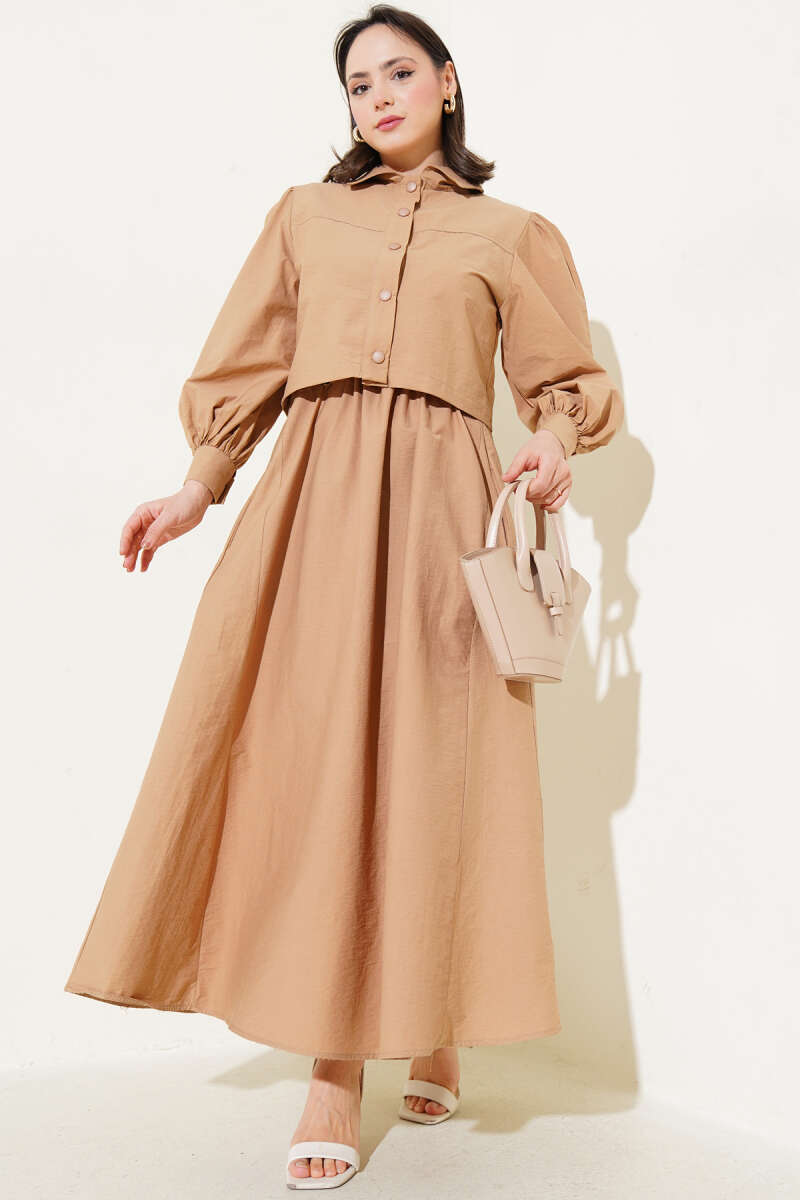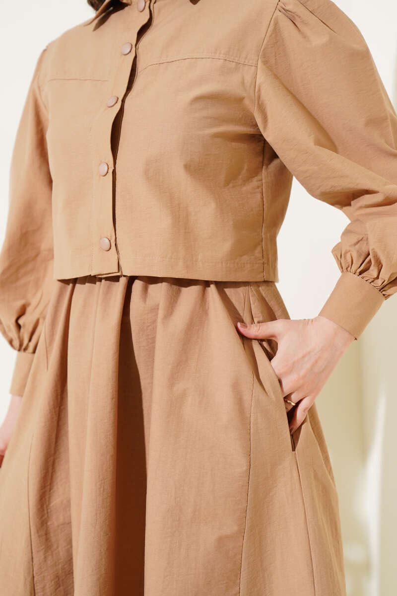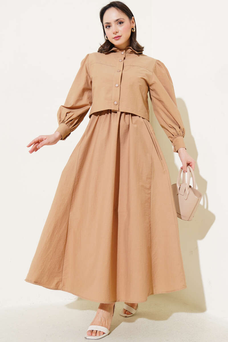 Çıtçıt Düğmeli Ceketli Jile İkili Takım Latte