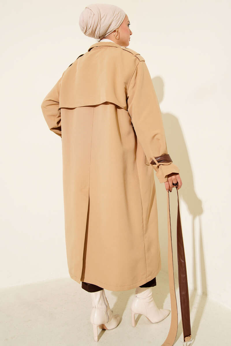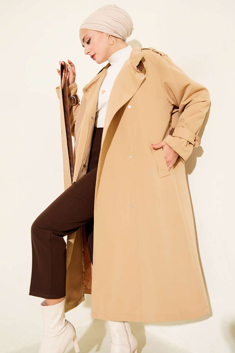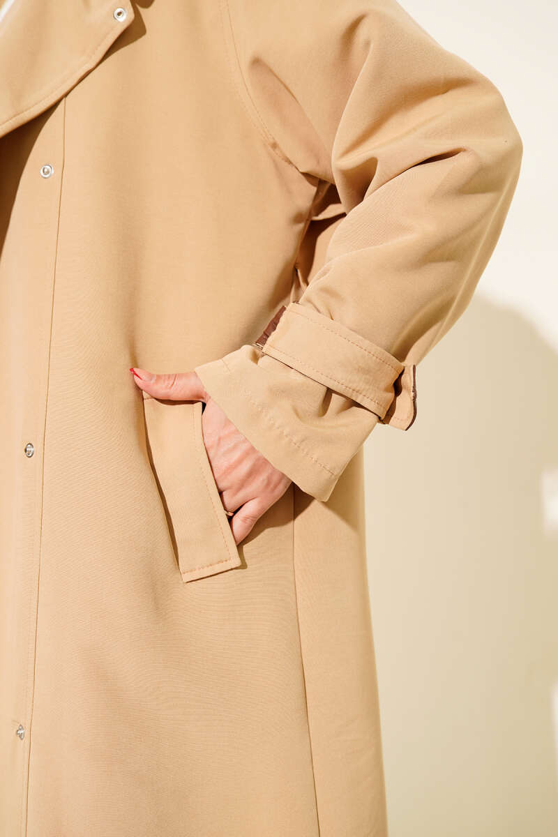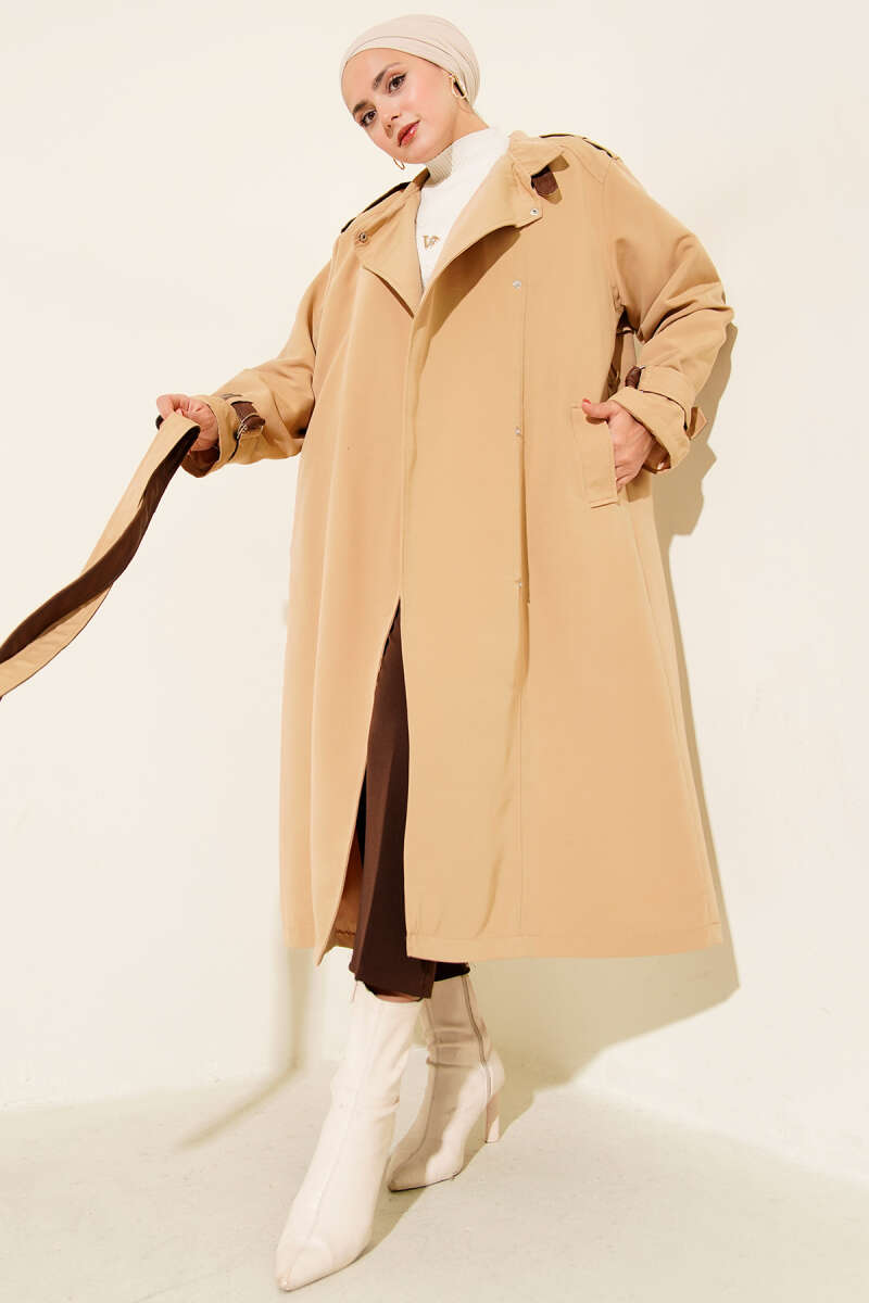 Pelerin Detaylı Kuşaklı Kısa Trençkot Camel