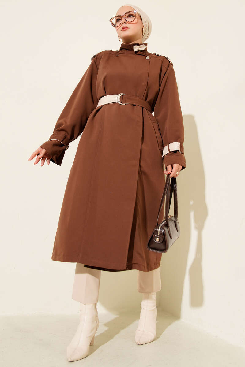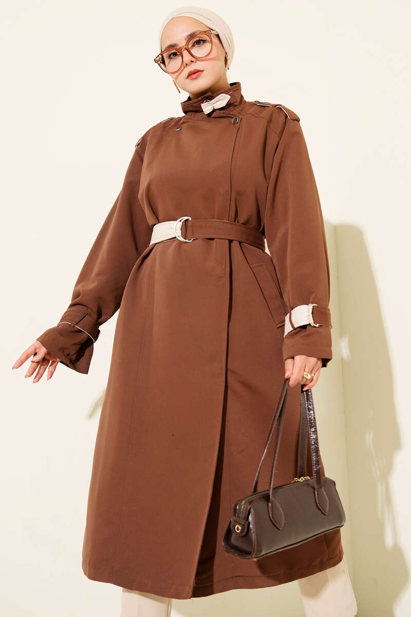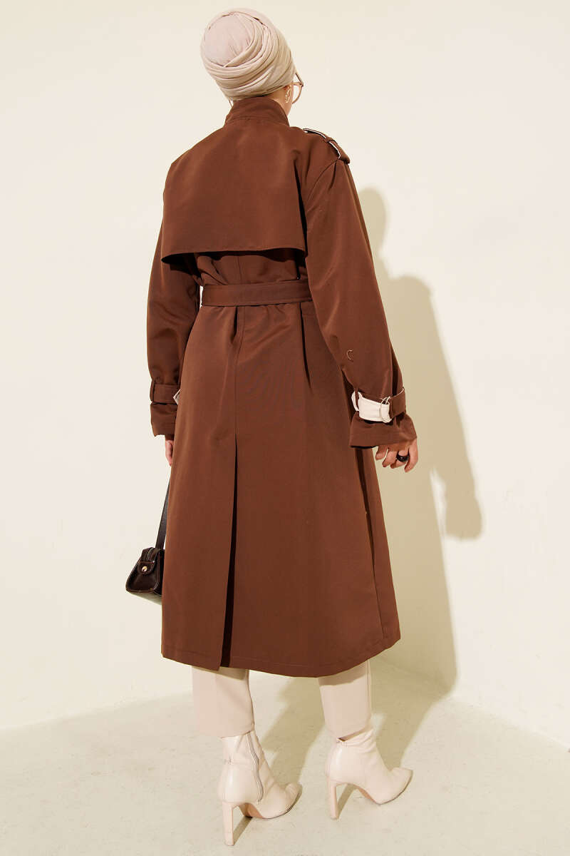 Tek Omuz Apoletli Düğmeli Trençkot Kahve