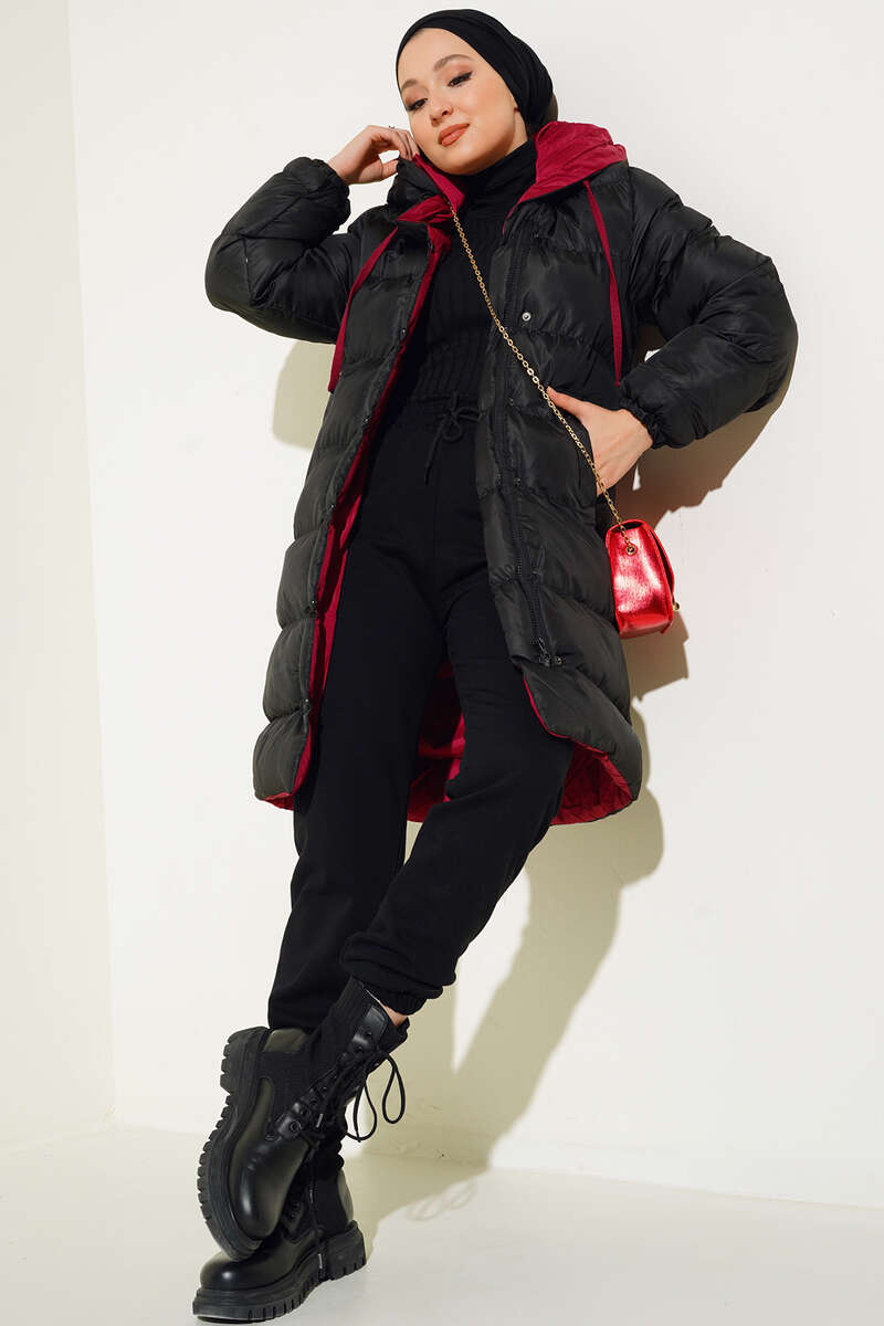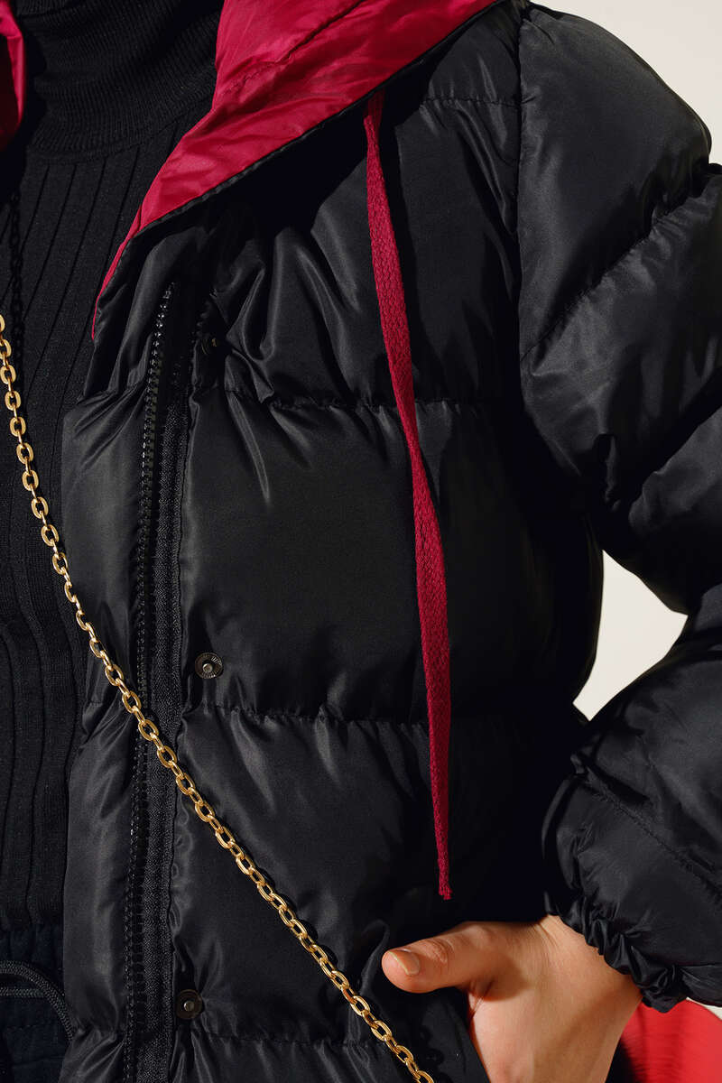 Yeni sezon şişme montumuz soğuk havalarda şıklığınızın tamamlayıcı parçası olacaktır. Boydan fermuarlı mont çıtçıt düğmelidir. Montumuz kapüşonludur. Kapüşonu ip bağlamalıdır. Ön tarafta bulunan cepleri kullanışlıdır.