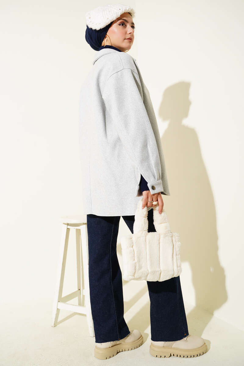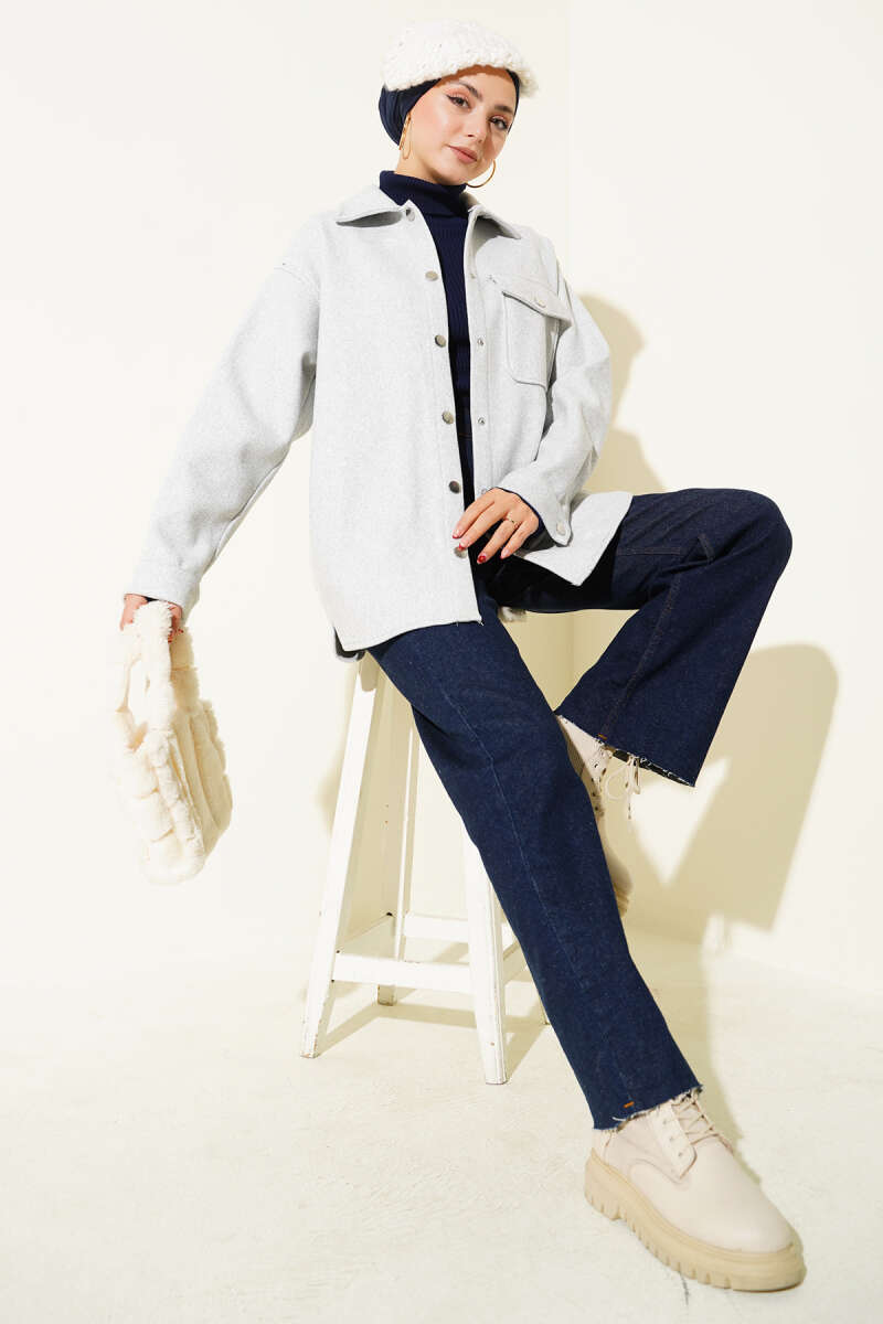 Çıtçıt Düğmeli Gömlek Yaka Kaşe Ceket Açık Gri