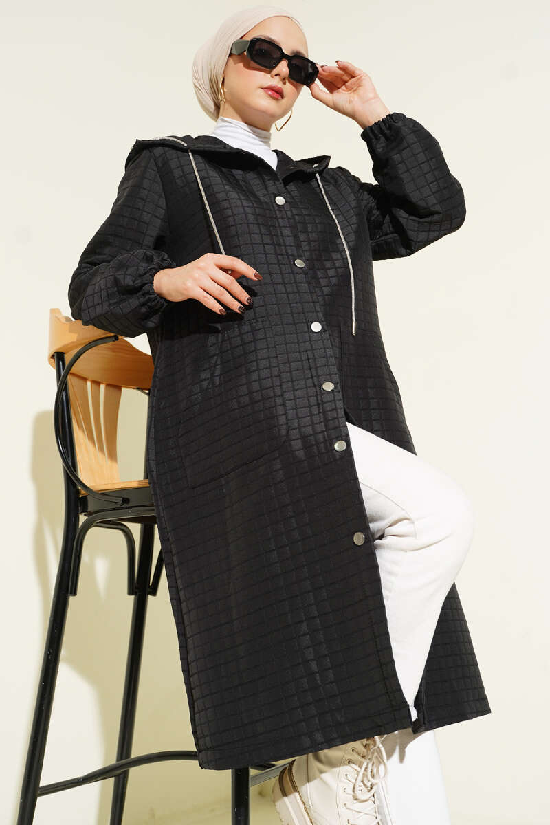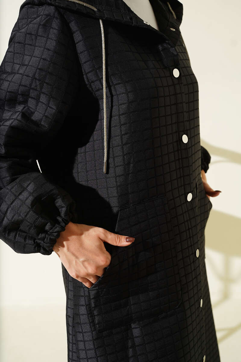 Çıtçıt Düğmeli Kapüşonlu Kapitone Kap Kahve