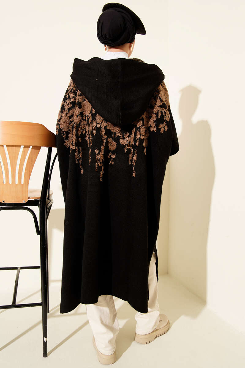 Gömlek Yaka Düğmeli Kaşe Panço Siyah