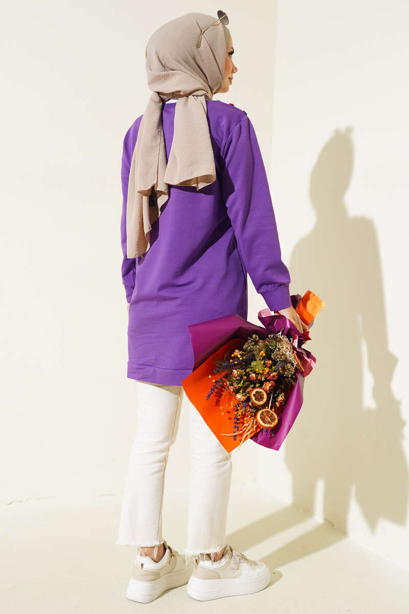 Kelebek Baskılı İki İplik Tunik Lacivert