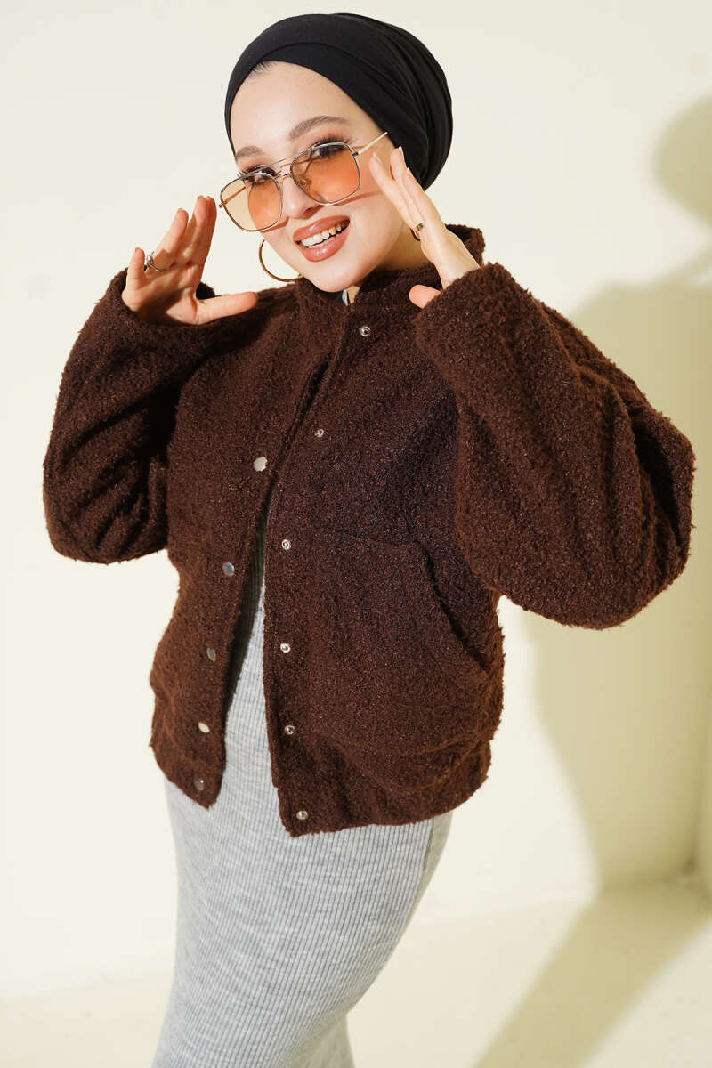 Çıtçıtlı Buklet Cepli Ceket Füme