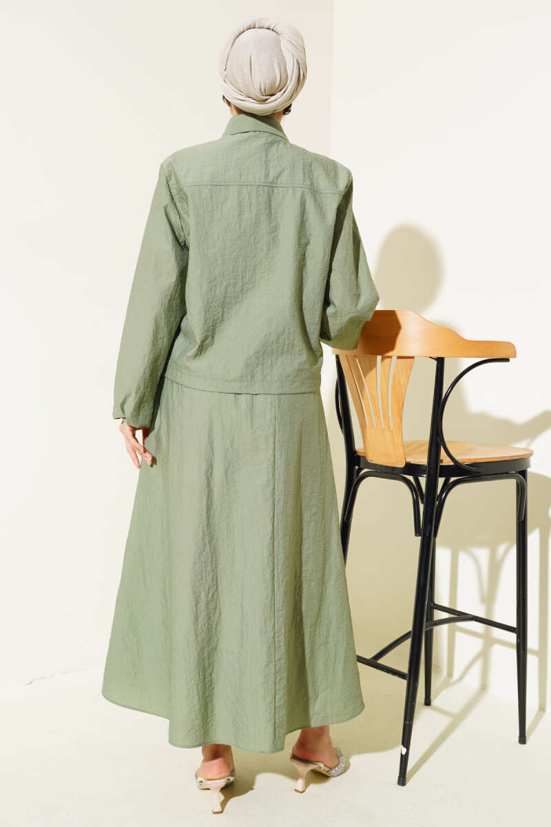Brit Düğme Detaylı İp Kuşaklı İkili Takım Kahve