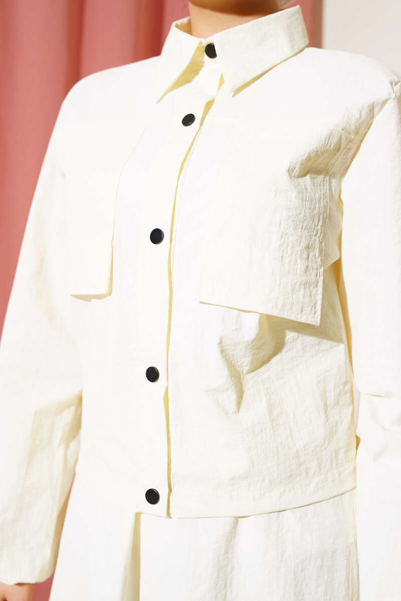 Gömlek Yaka Çizgili T-shirt Beyaz