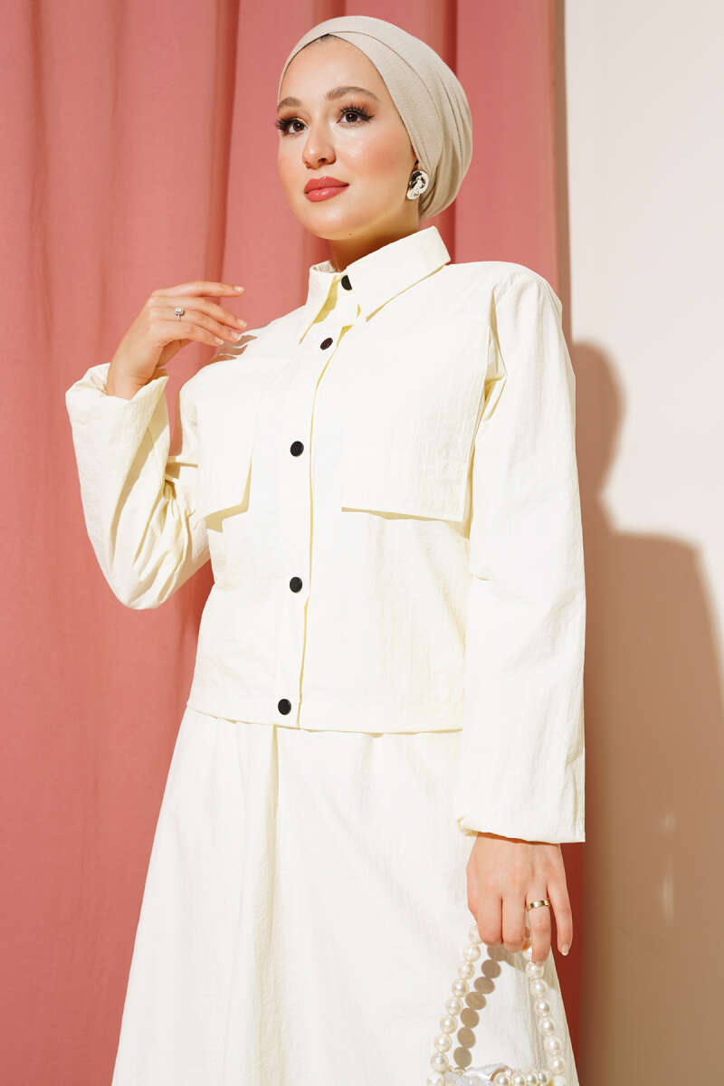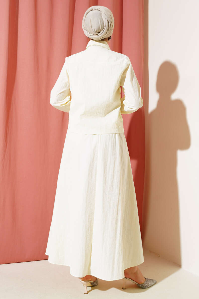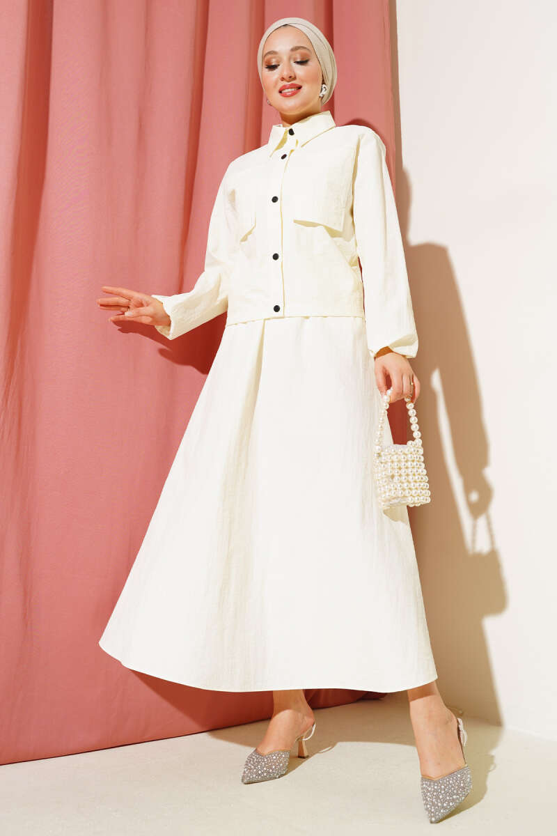 Etek Ucu Tünelli Loyşa İkili Takım Bej
