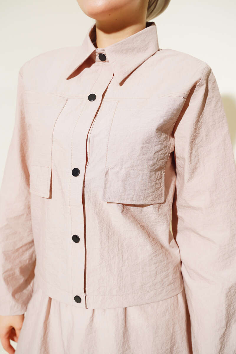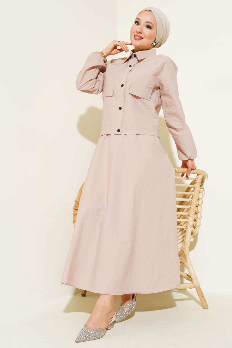 Çapraz Düğmeli Yandan Bağlamalı İkili Takım Bej