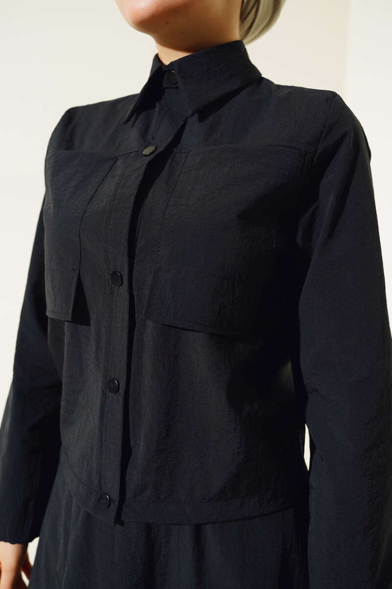 Kolları Şifon Düğme Detaylı Bluz Siyah