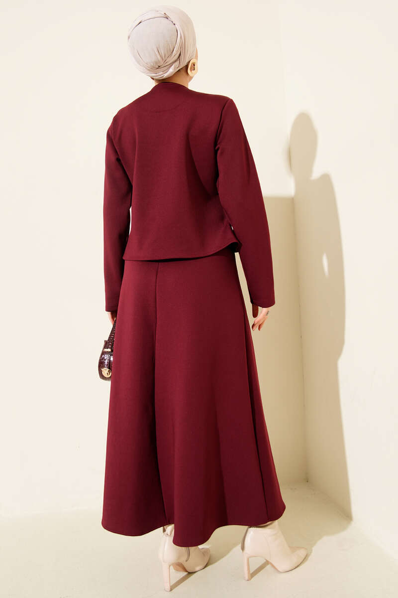 Asimetrik Kesim Bisiklet Yaka İkili Takım Bordo