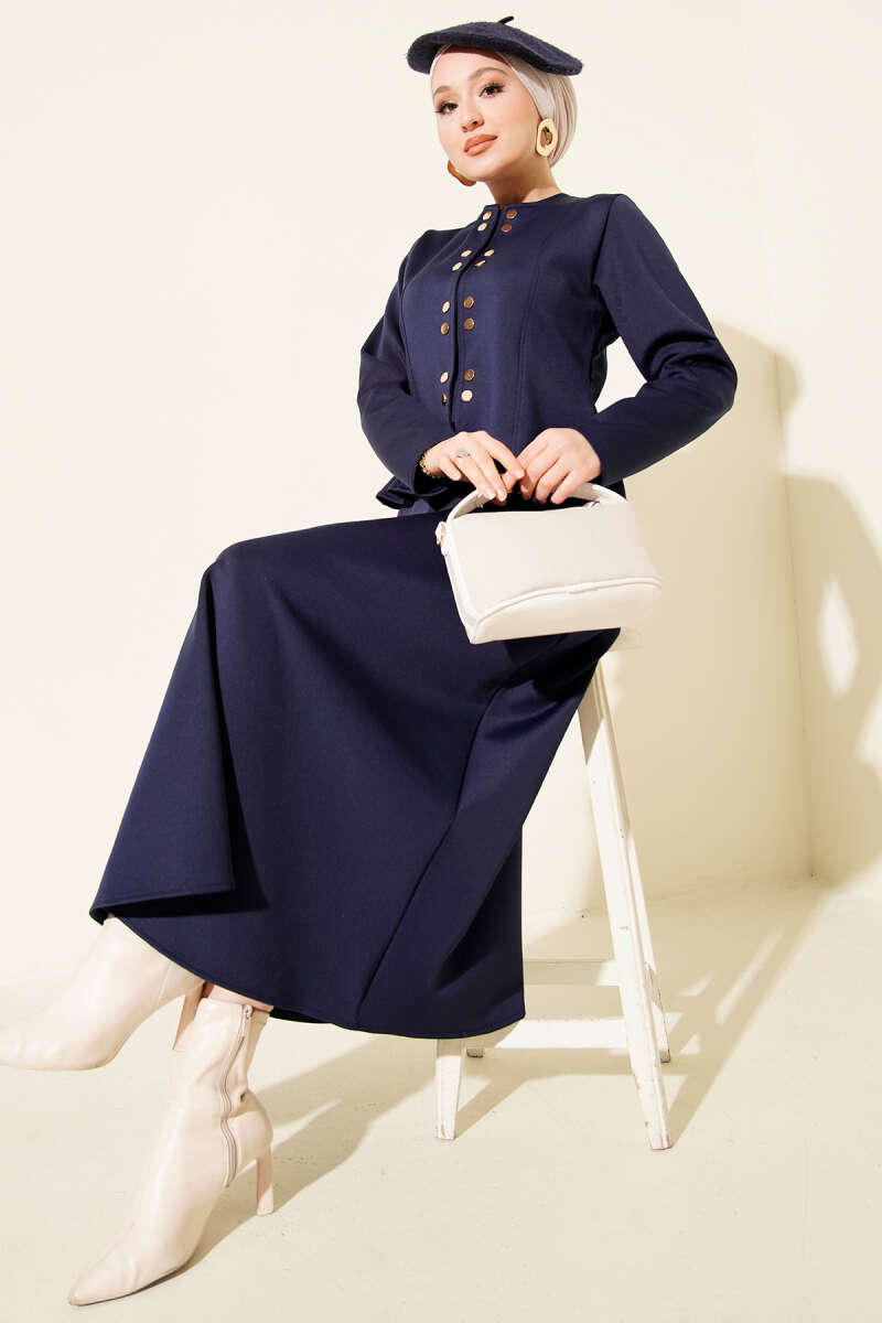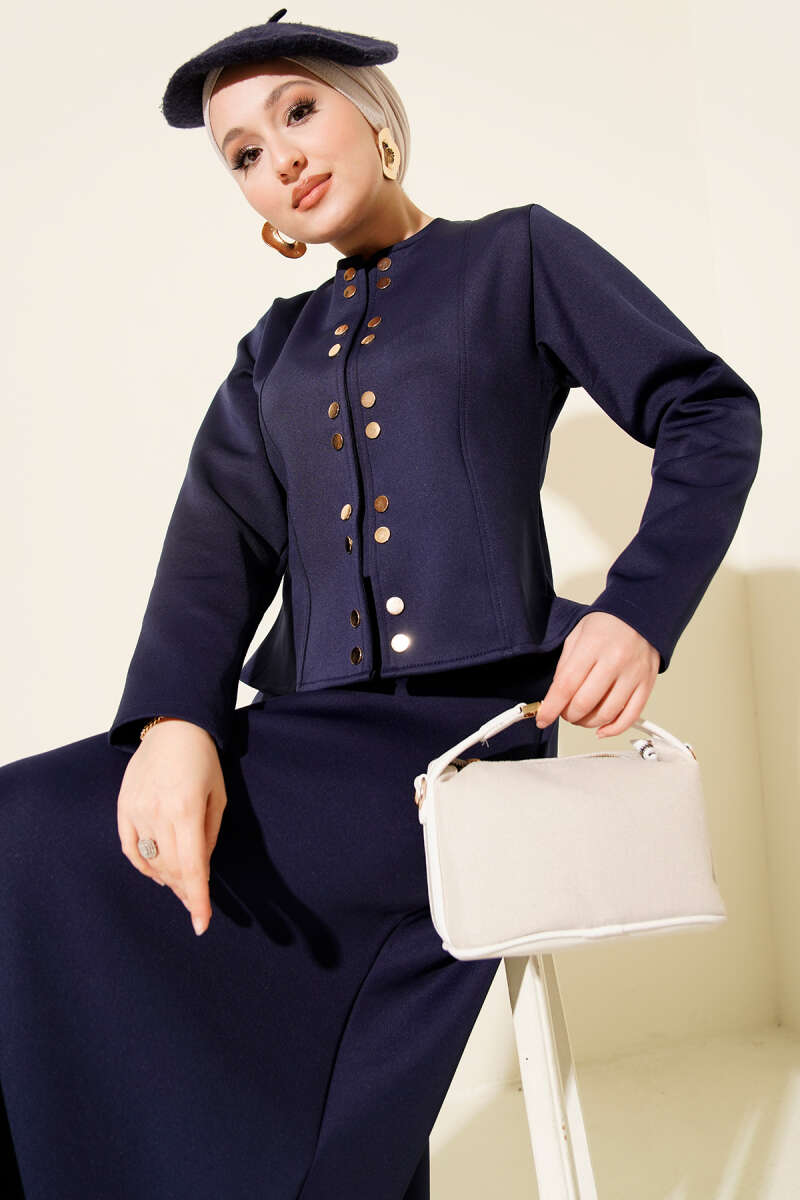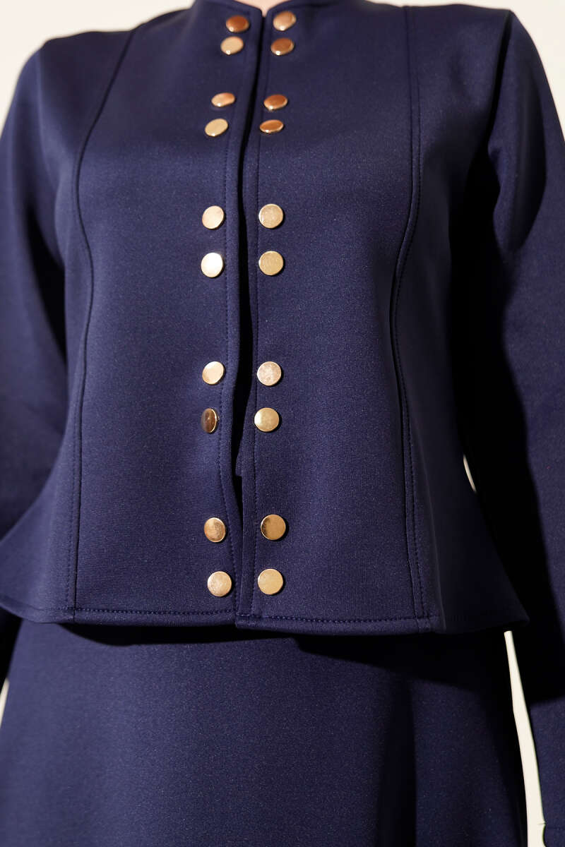 Gold Düğmeli Yelekli Elbise Takım Lacivert