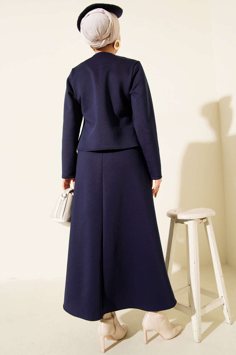 İp Kuşaklı Etekli Scuba İkili Takım Lacivert